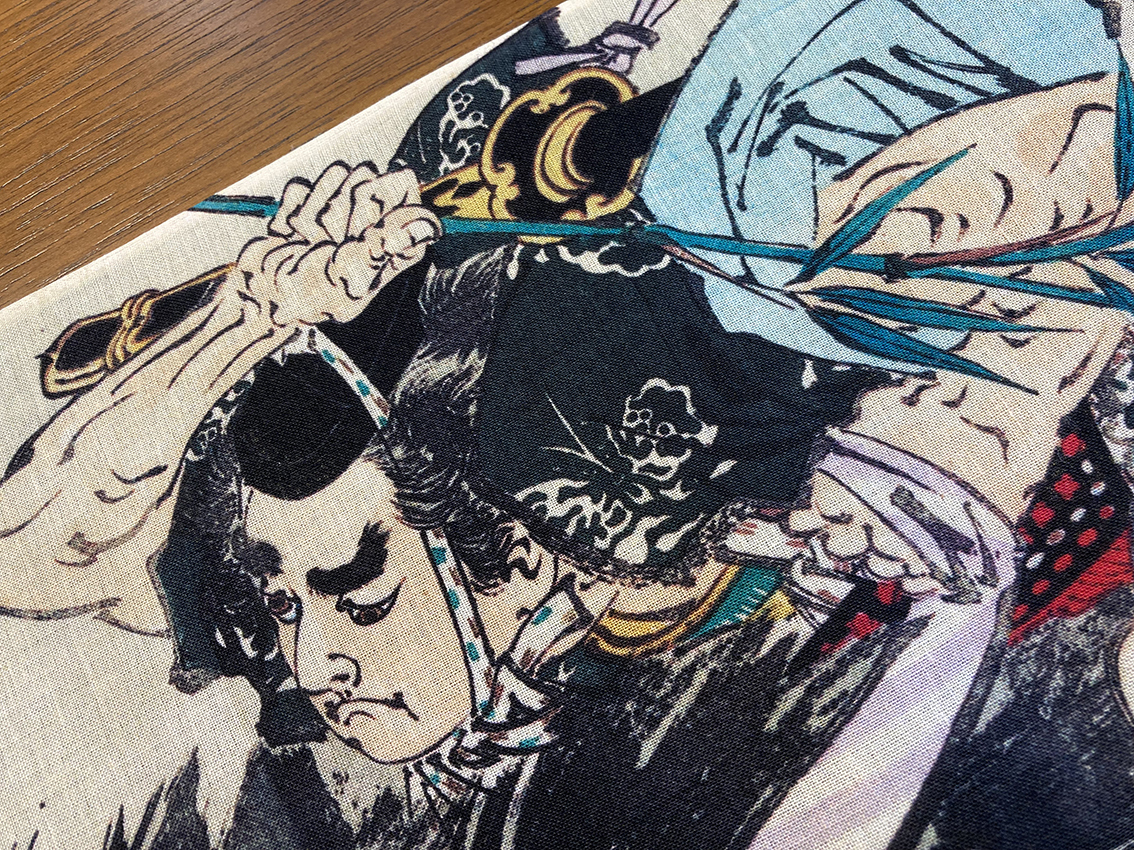 最高級の手ぬぐい生地の特岡に反応染料で捺染プリントしています。