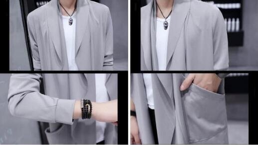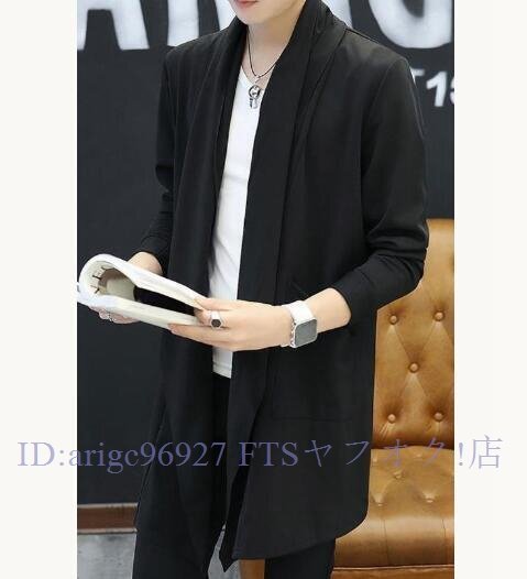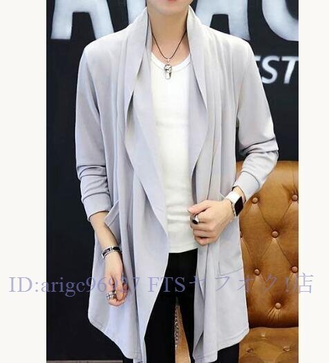 B0719☆新品日焼け対策メンズ トレンチコート 前開きコート 無地 長め丈 カジュアル カーディガン 長袖 薄手