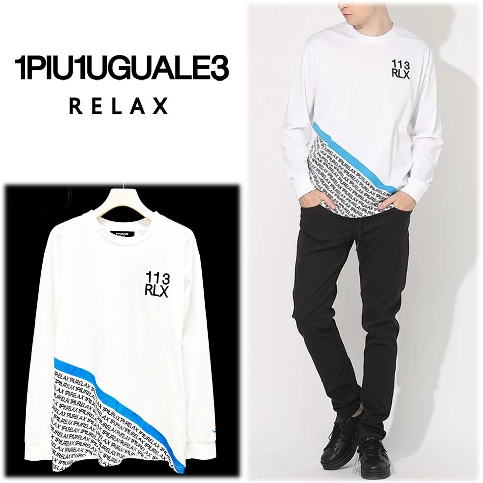 《1PIU1UGUALE3 RELAX》新品 ロゴ刺繍入り ロゴライン総柄ロンT 長袖カットソー L S0028 |