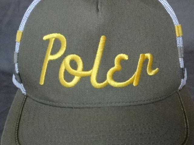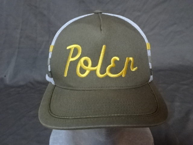 激レア USA購入 オレゴン州ポートランド発 人気アウトドア系ブランド【POLeR】ポーラー 筆記体ロゴ刺繍入り メッシュキャップ 中古良品