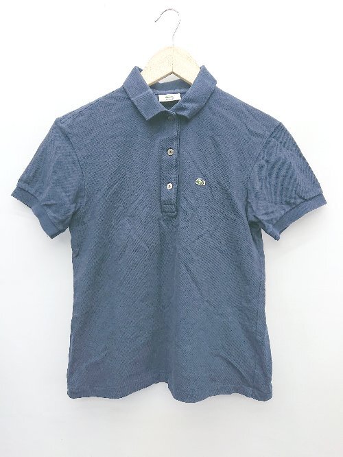 ◇ LACOSTE ラコステ ワニロゴ 鹿の子 半袖 ポロシャツ サイズ40 ネイビー レディース P