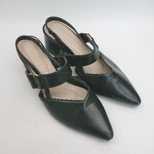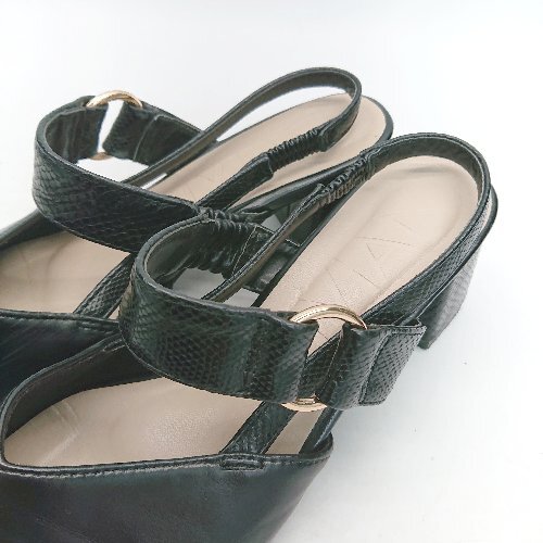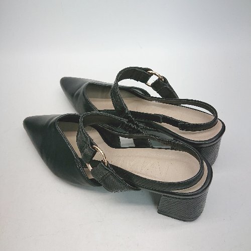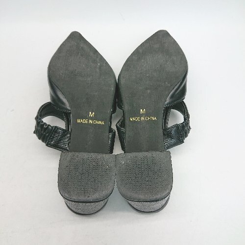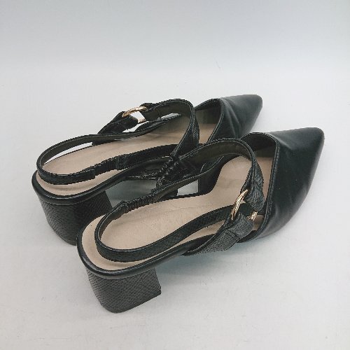 ◇ Vivian ヴィヴィアン ポインテッドトゥ ストライプ チャンキーヒール パンプス サイズM ブラック レディース E