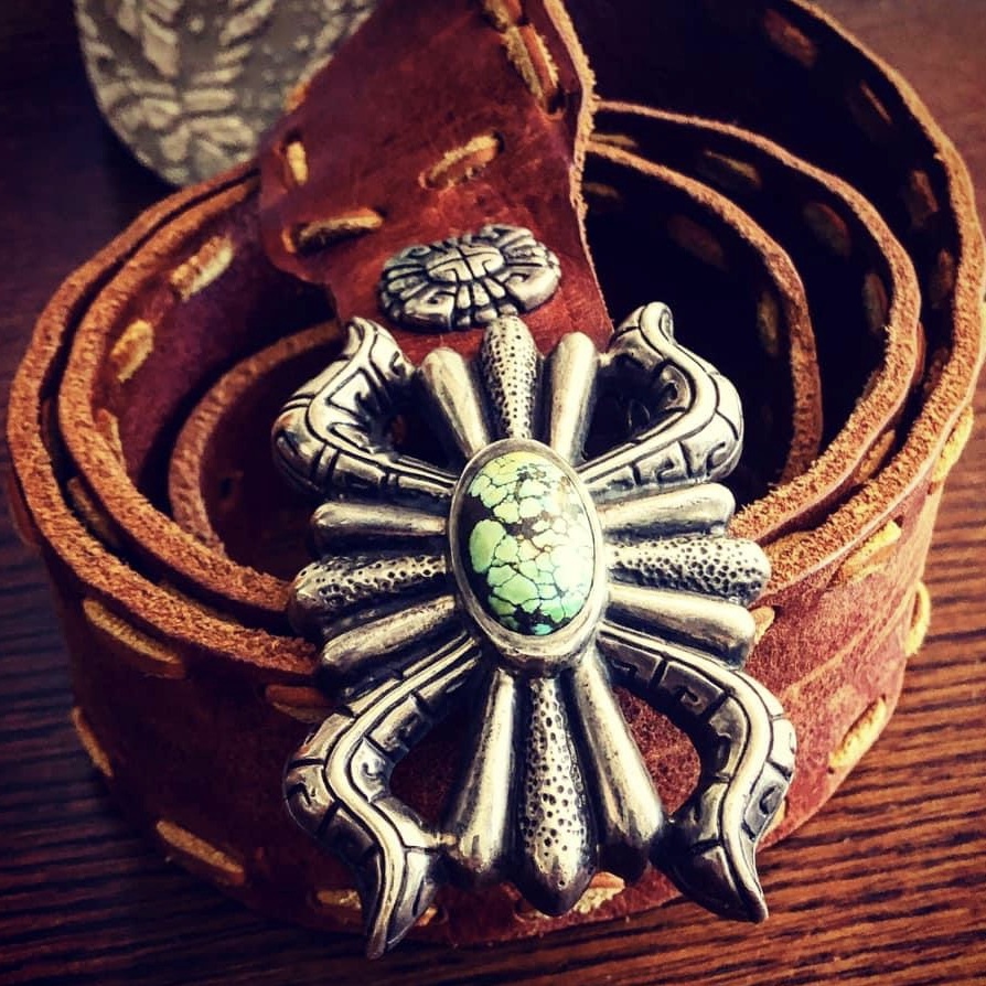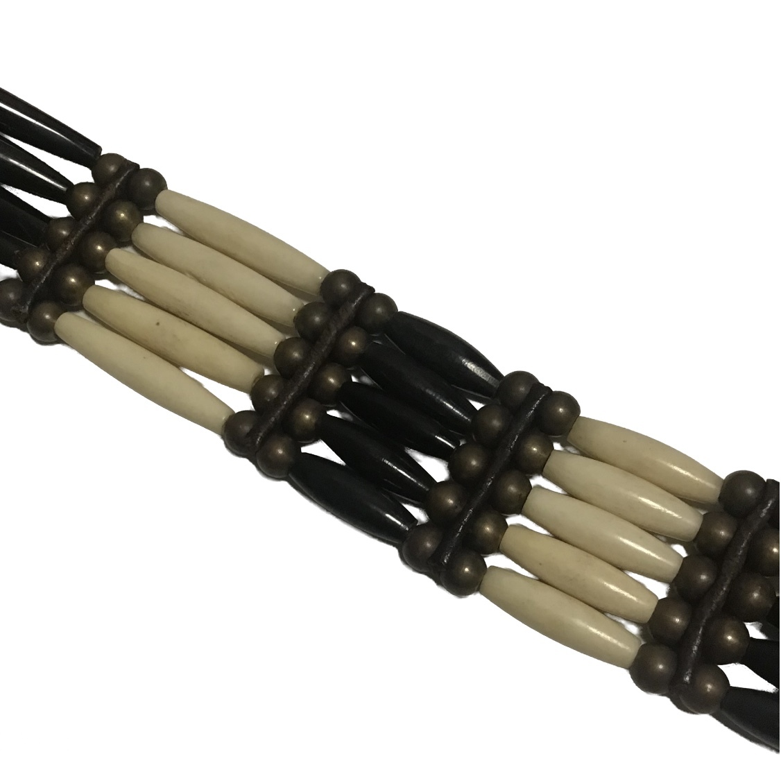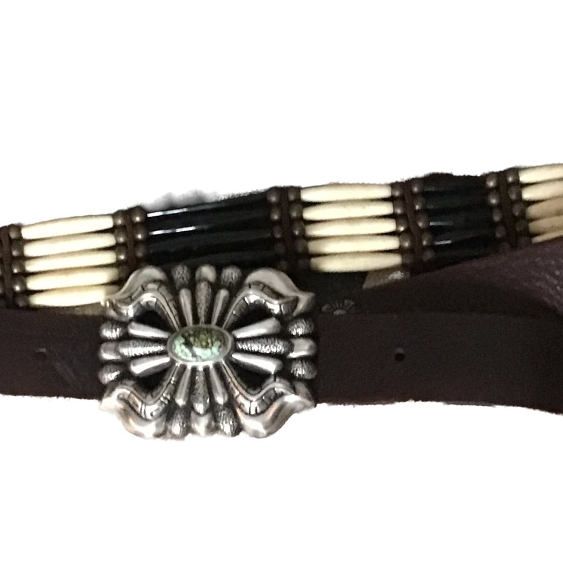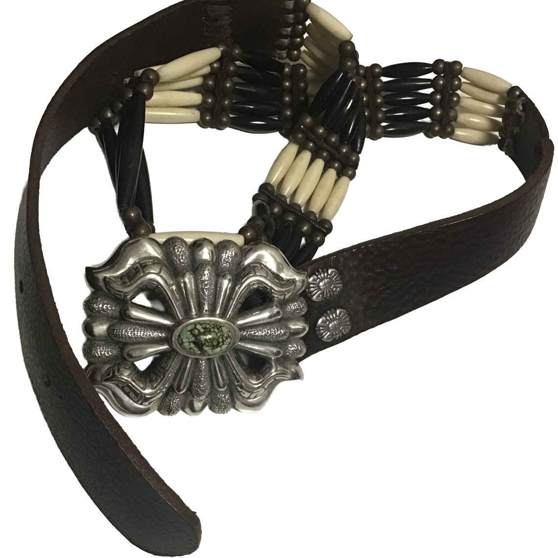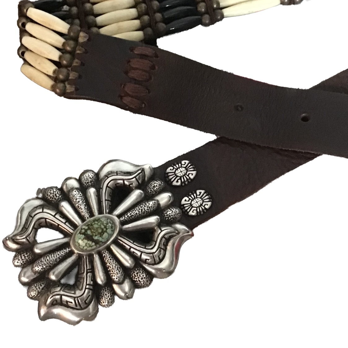 ◆ NAGUAL・ Tribalby Turquoise Buckle + Real Horn Hairpipe Beaded Belt ◆