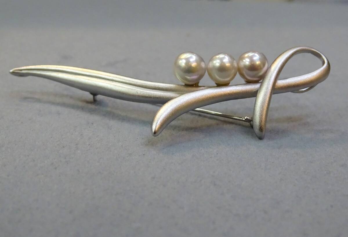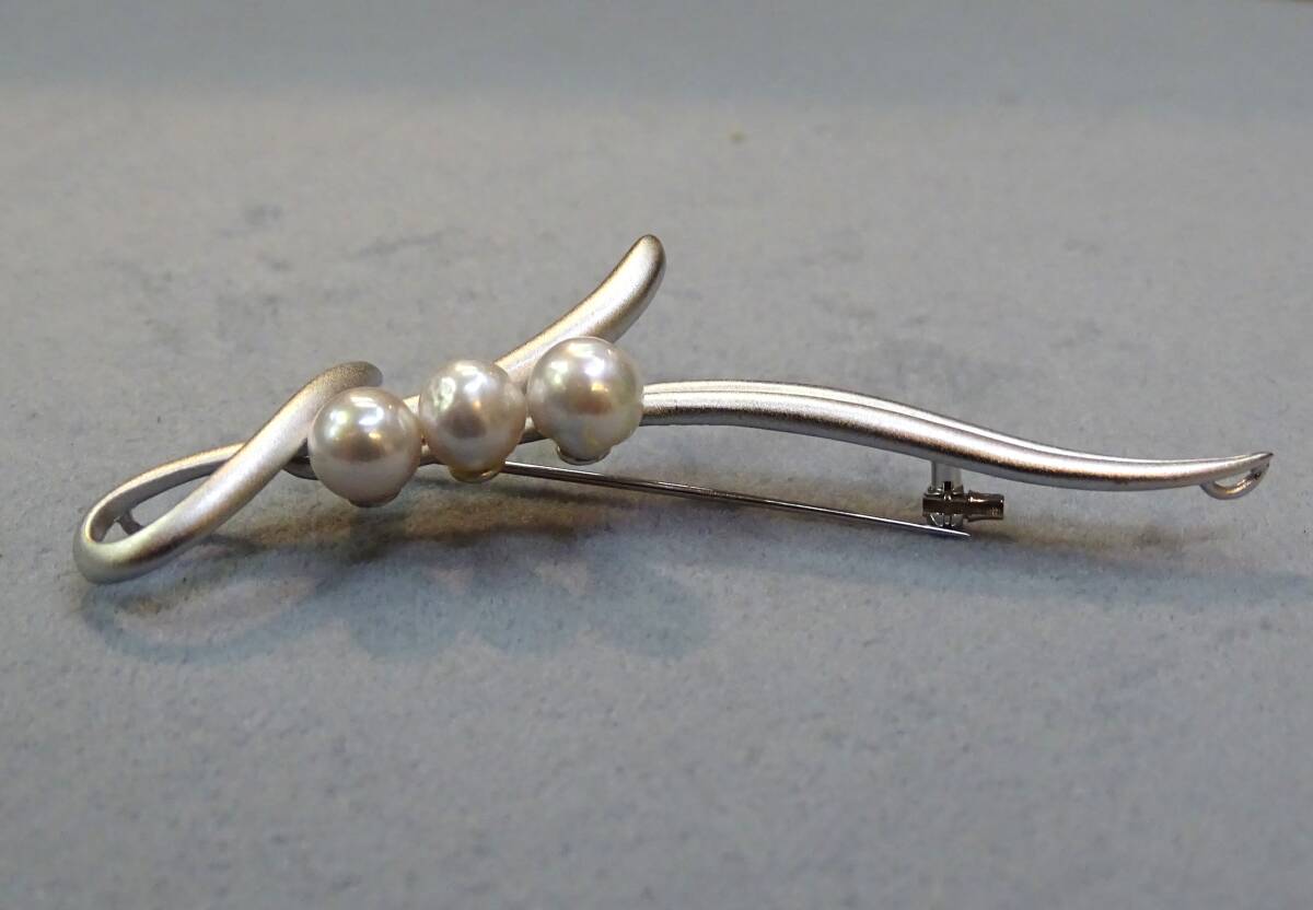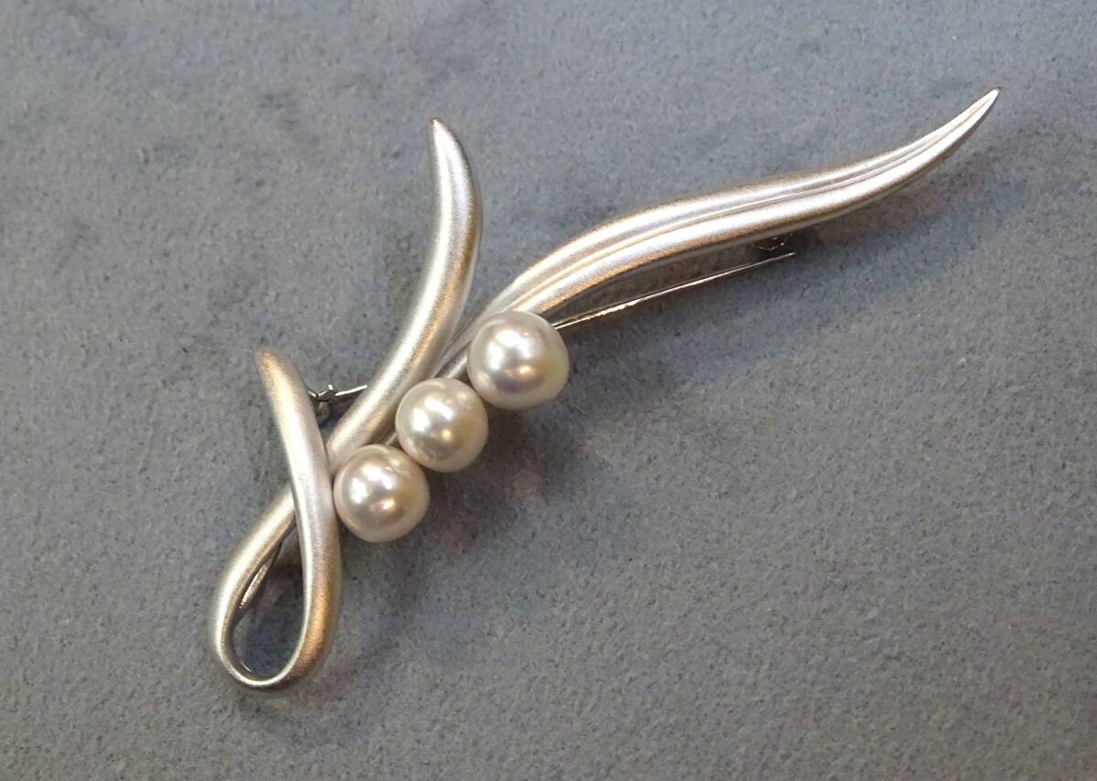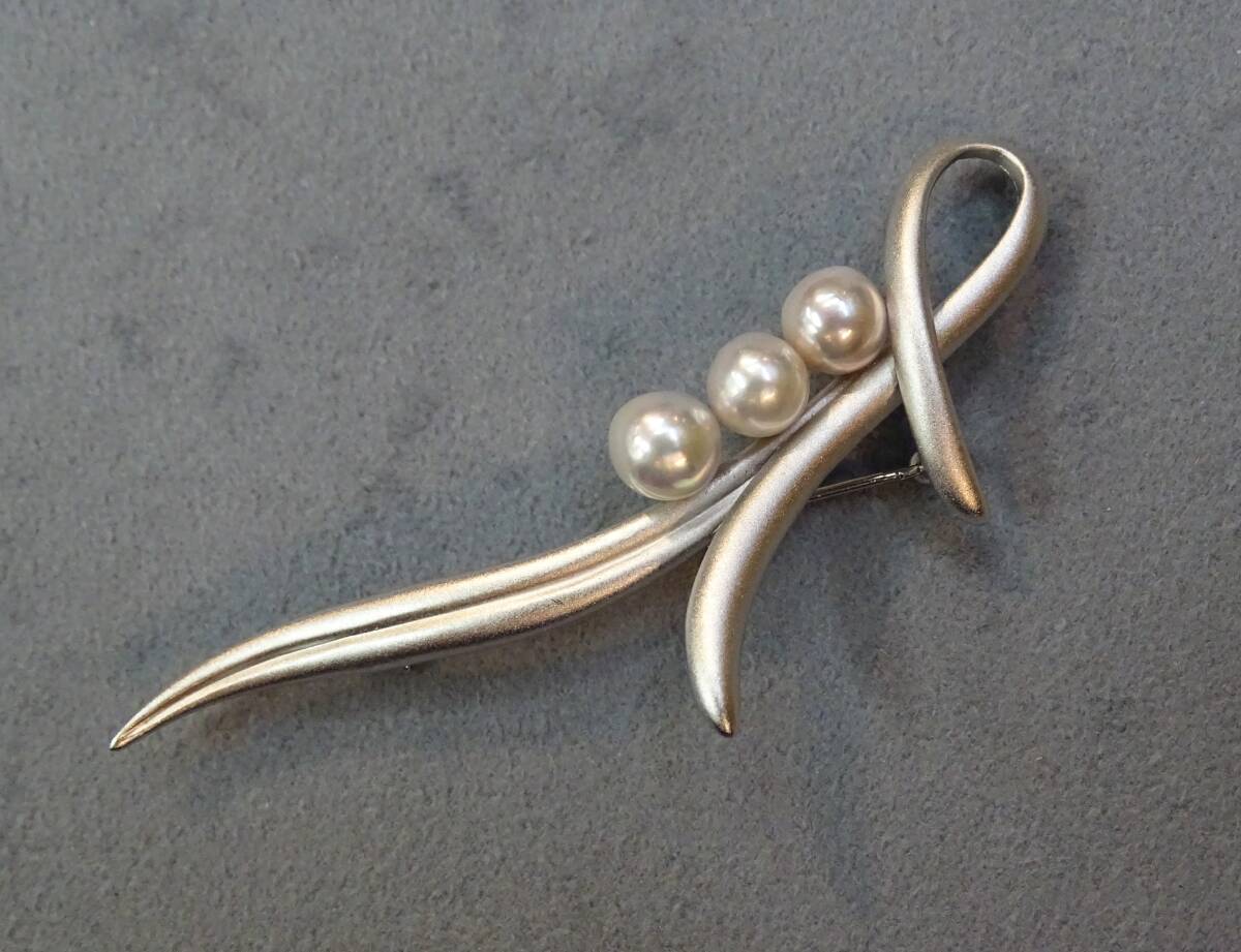 ♪色・艶・テリ・巻きの良い最高級!個性的デザインの【天然:アコヤ真珠:3個】【ブローチ&ペンダント】!