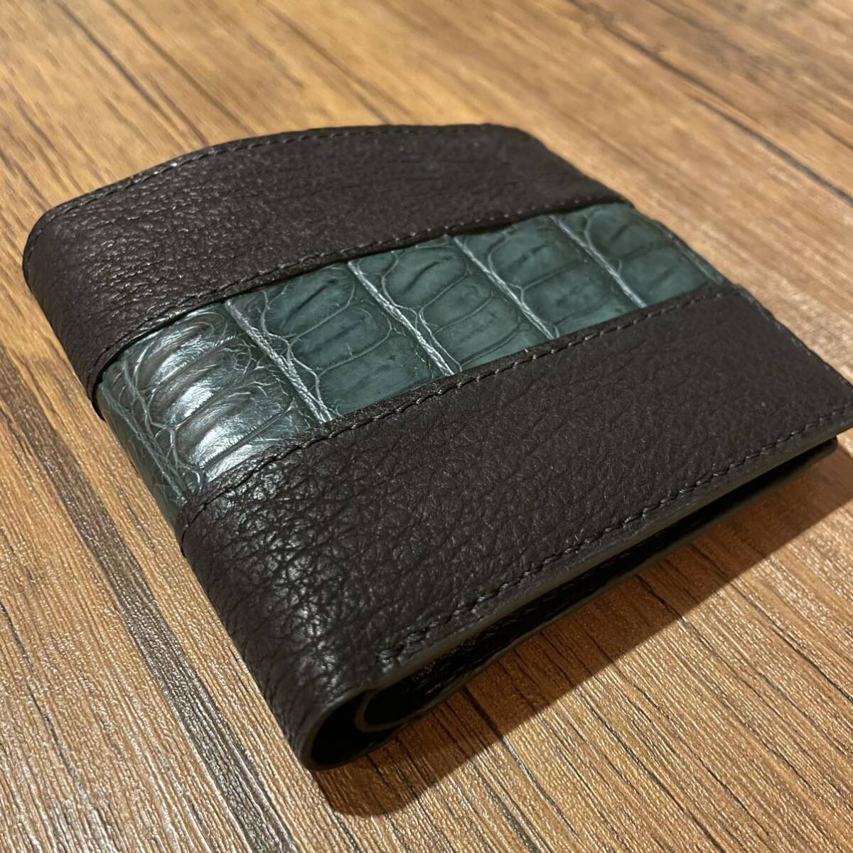 こちらは、本物のワニ革とサメ革、牛革で作られています。このコラボにより、他に見ないカッコいいデザインとなり、手触りが柔らかく、コンパクトに収まる機能性を持ち合わせています。ビジネスシーンでも活躍すること間違い無しです♪