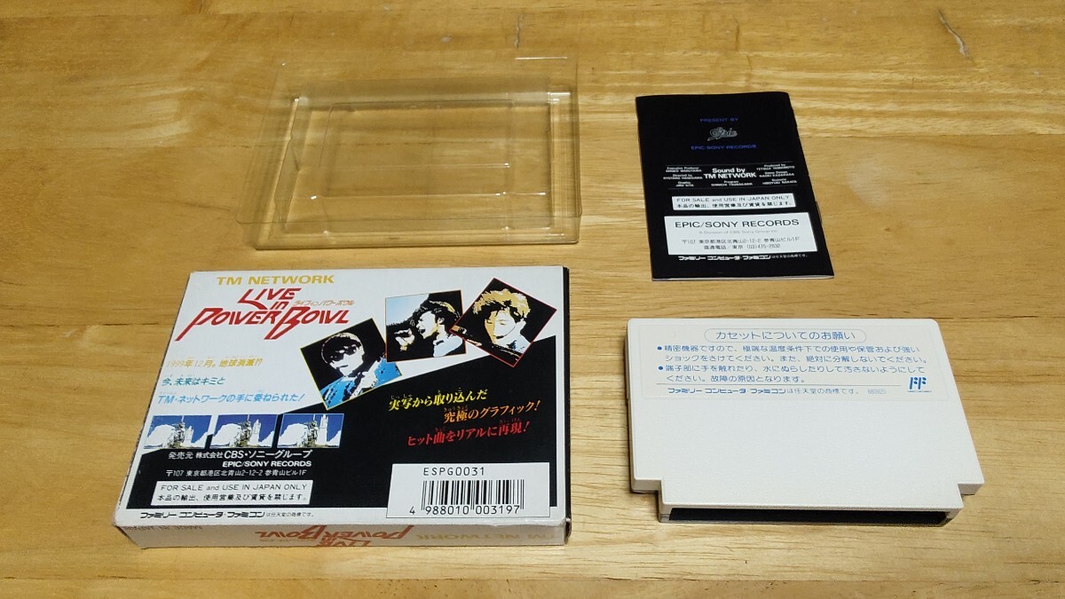 ファミコン用ソフト「TMネットワーク LIVE IN POWER BOWL」(箱・取説付き)です。