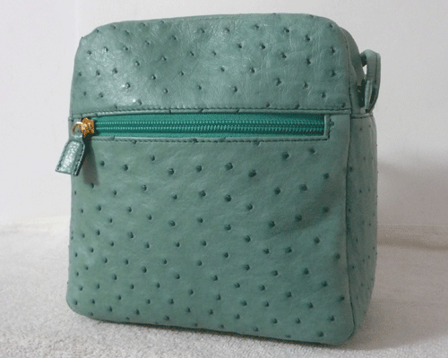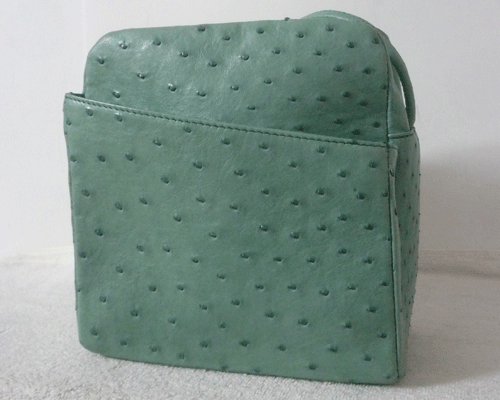 良品 オーストリッチ エメラルドグリーン系 斜め掛け ショルダーバッグ レディース | ||
