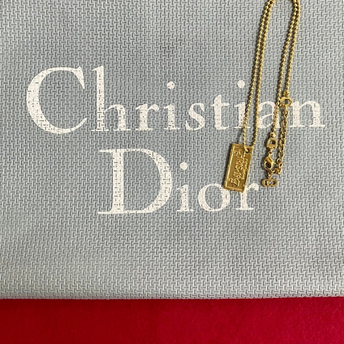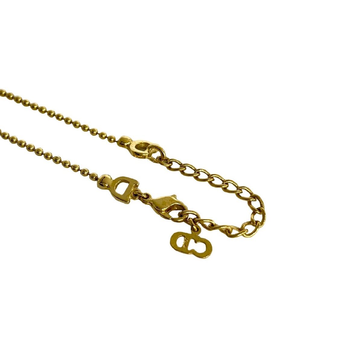 ほぼ未使用 レア Christian Dior ディオール ロゴ プレート モチーフ ボールチェーン ネックレス ペンダント ゴールド アクセサリー 80138