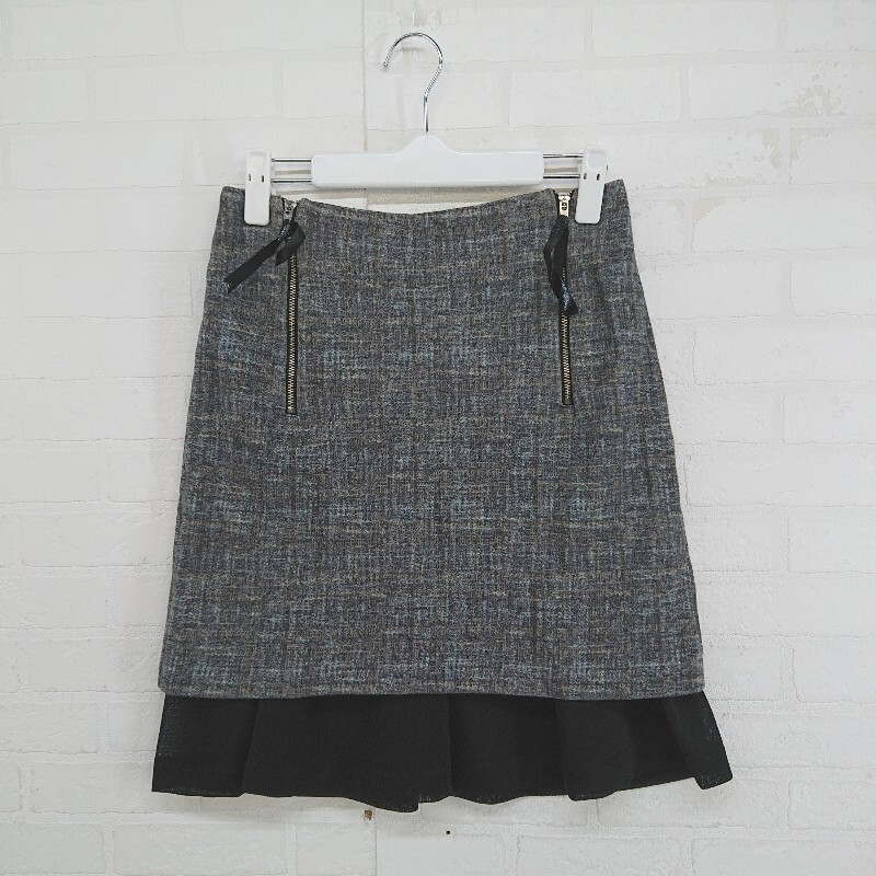 ◇ TOGA PULLA トーガ プルラ 切替 フロントジップ ミニ タイト スカート サイズ1 グレー ブルー ブラック系 レディース E