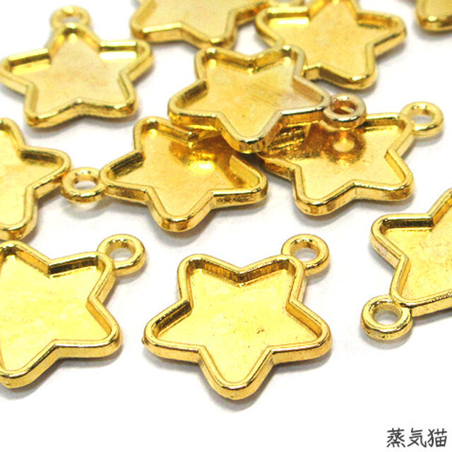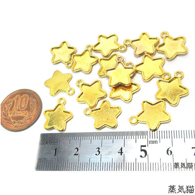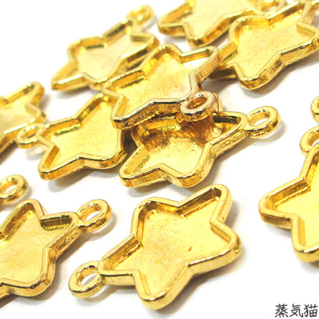 s0689 星セッティング ゴールド 15個【宇宙 台座チャーム ピアス イヤリング 手芸材料ハンドメイド用アクセサリーパーツ素材】蒸気猫パーツ