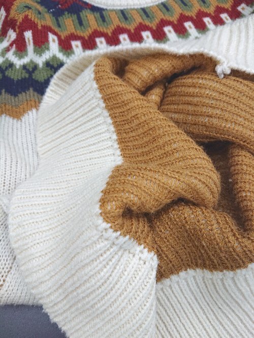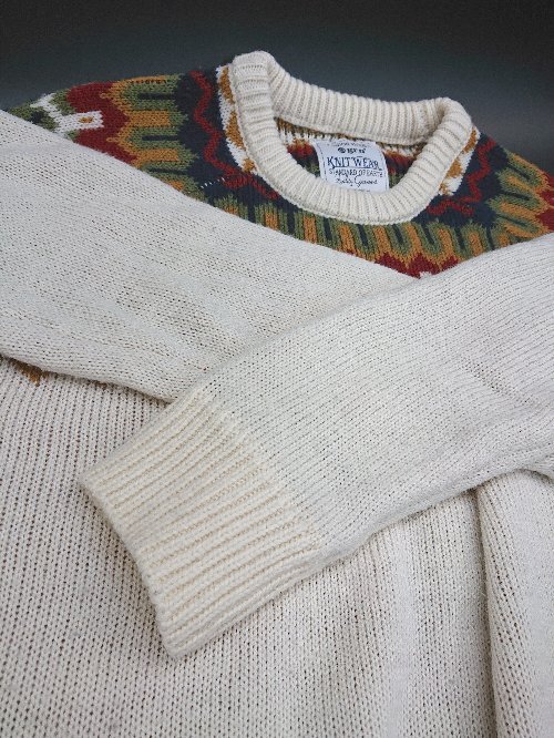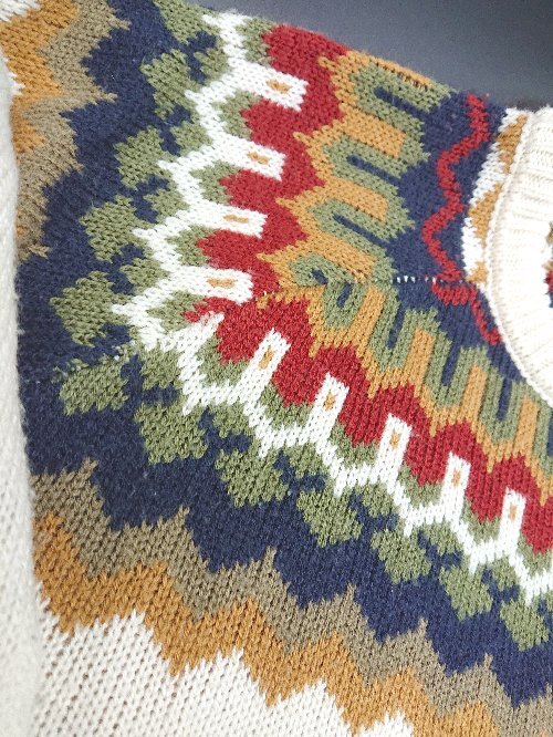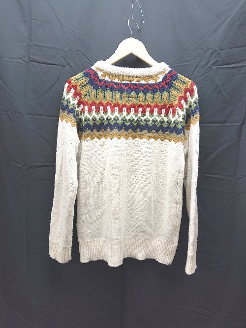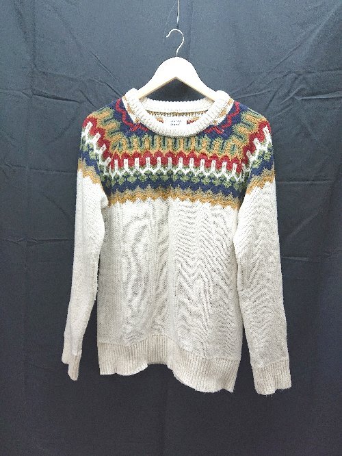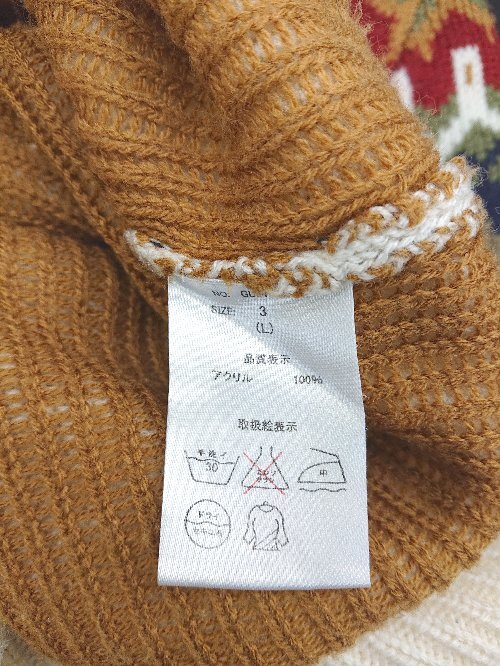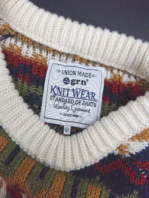 ◇ grn ジーアールエヌ クルーネック マルチ柄 長袖 ニット セーター サイズL マルチ レディース E