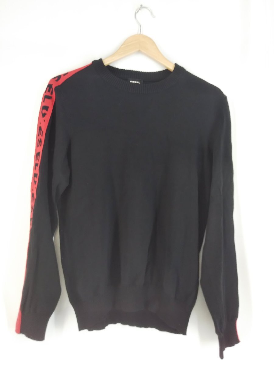 DIESEL ディーゼル サイドライン ニット セーター ブラック×レッド Sサイズ | |||||||||