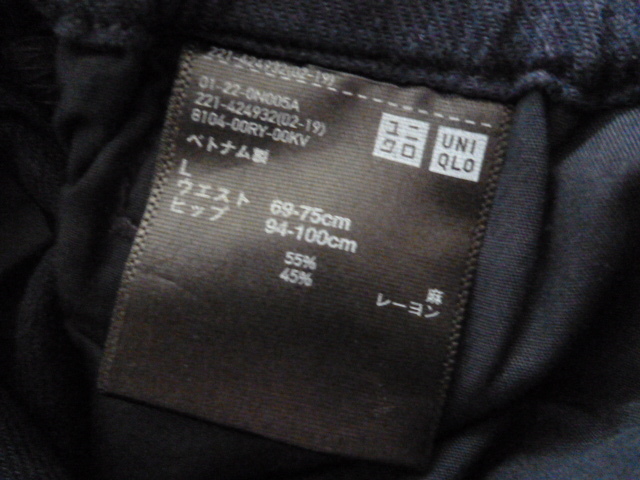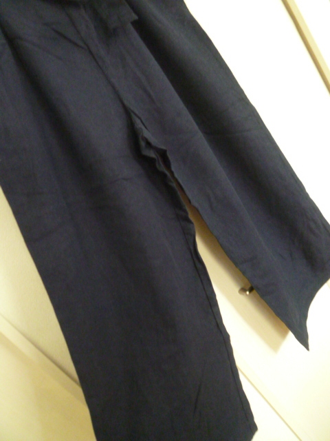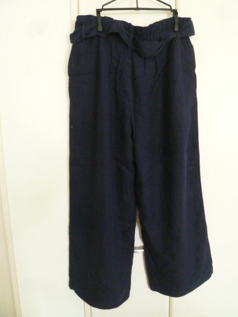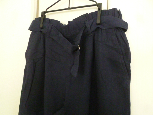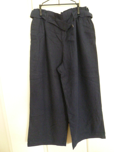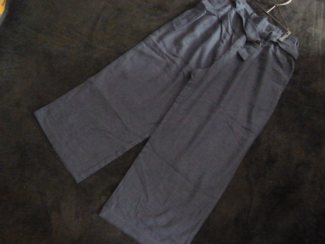UNIQLO/ユニクロ◇紺ウエストベルト付きワイドパンツL/ネイビーリネン麻フレアー◇A76p