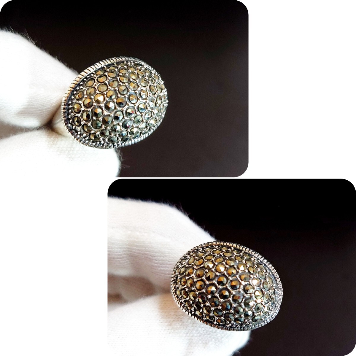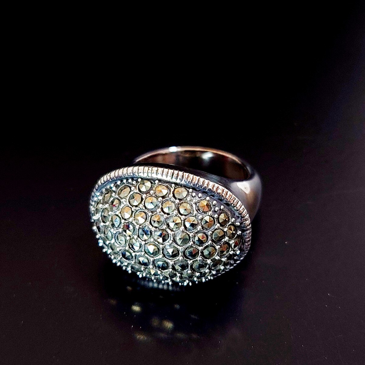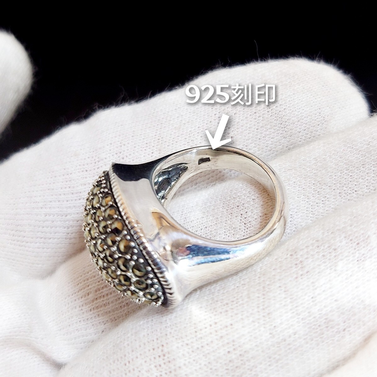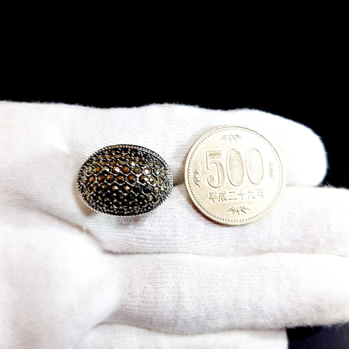 メタリックカラーのマーカサイト石を綺麗に並べたアンティークな雰囲気がお洒落☆