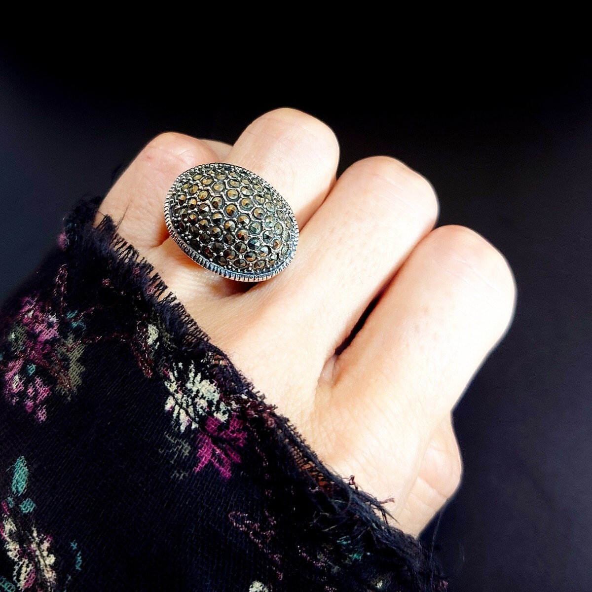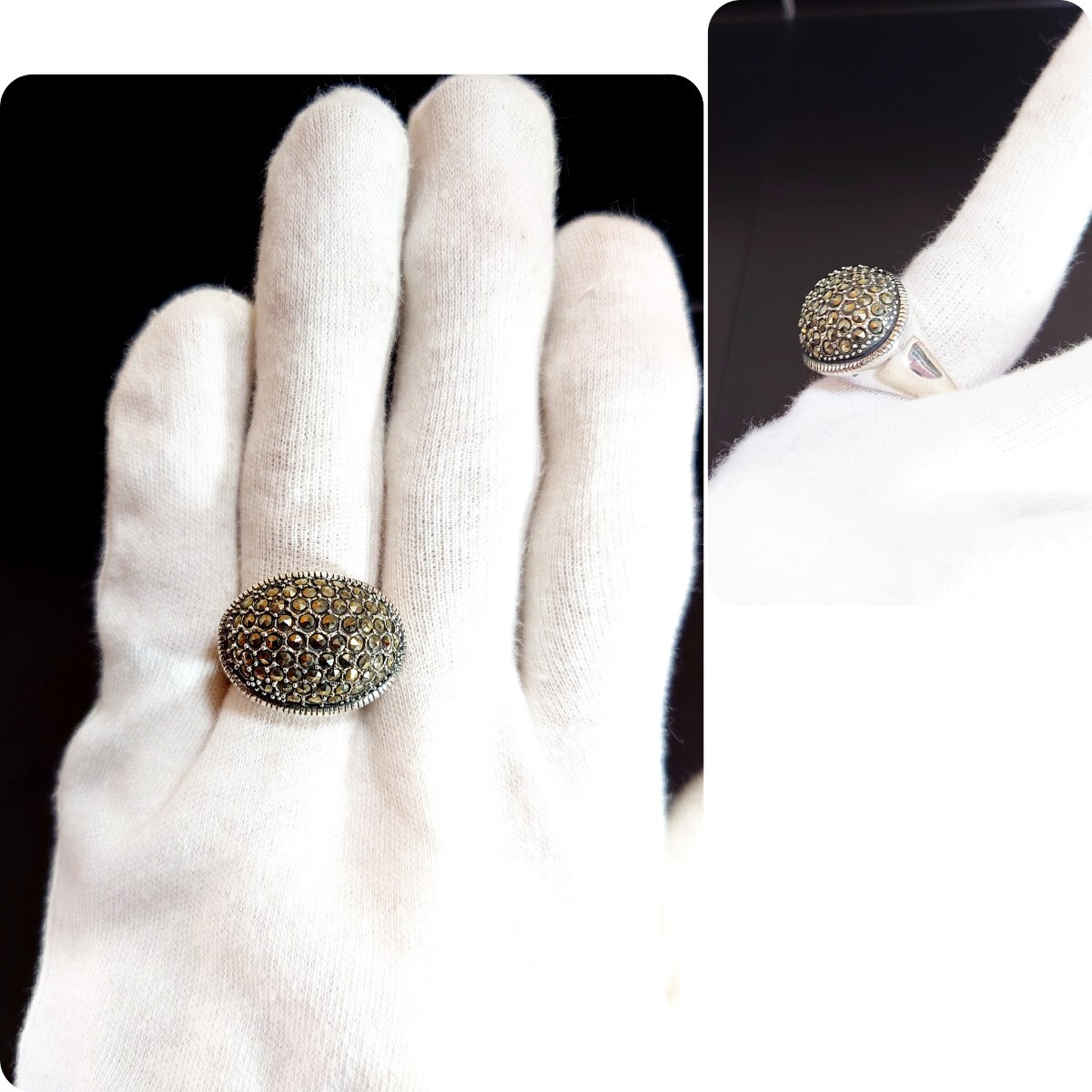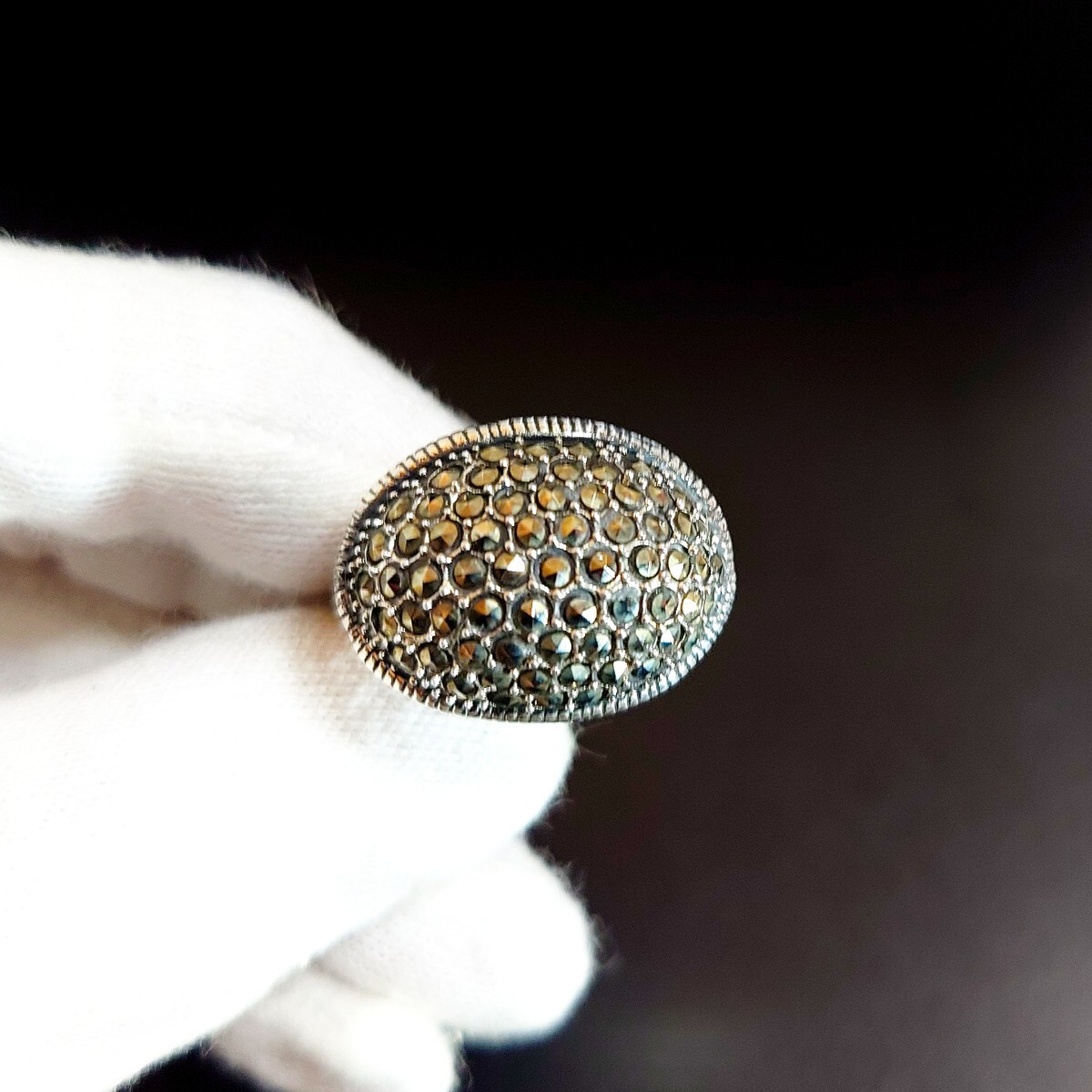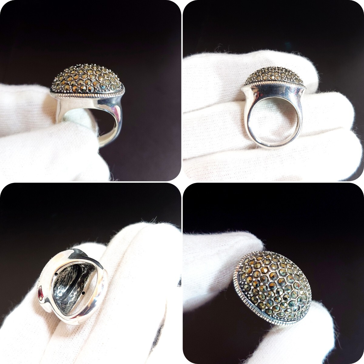 メタリックカラーのマーカサイト石を綺麗に並べたアンティークな雰囲気がお洒落☆