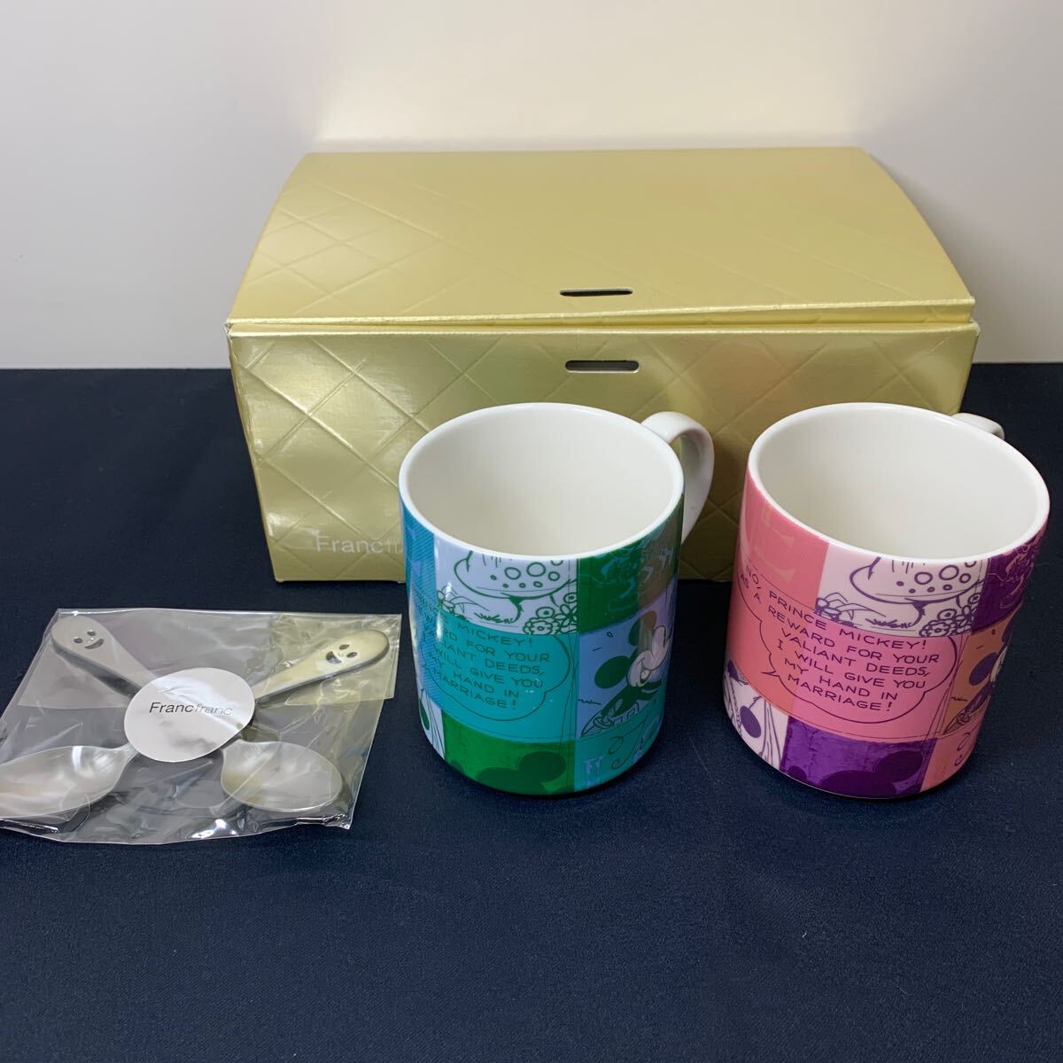 ★大阪/店舗受け取り可★Francfranc フランフラン Disney ディズニー ペアマグカップ ミッキー ミニー 約高さ9.5cm 直径8cm スプーン付き 外箱付き★
