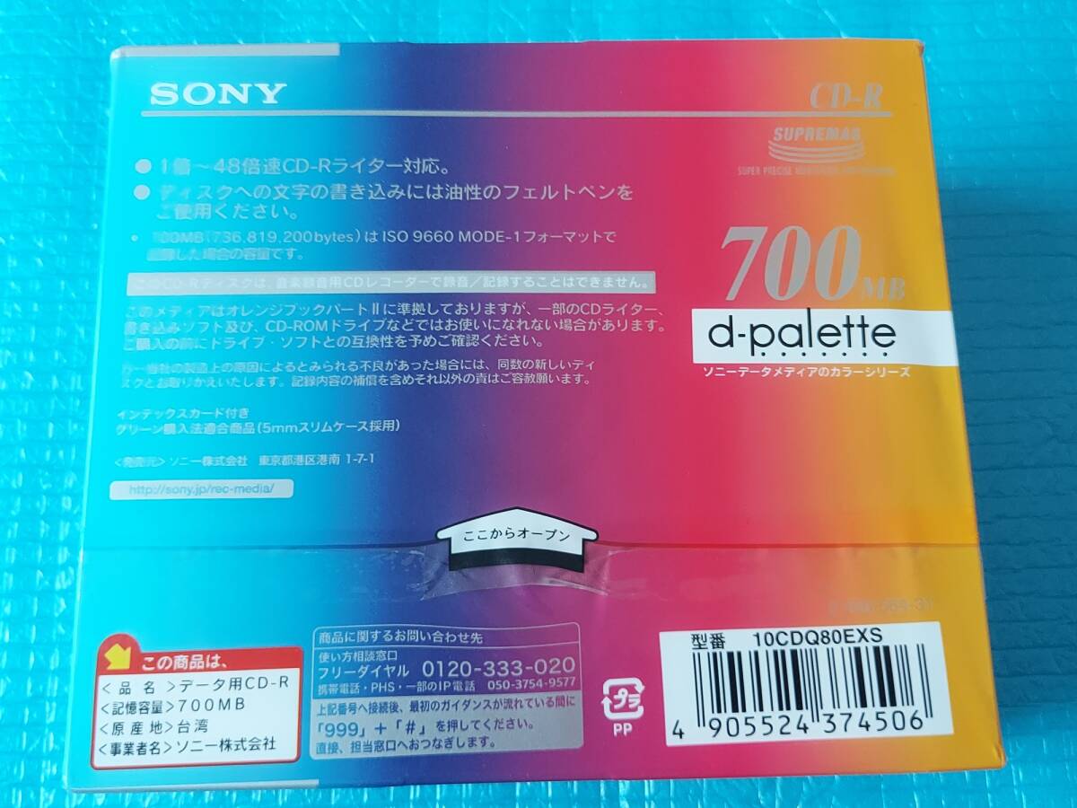 SONY 10枚セット 5 COLOR MIX CD-R 700MB 「未使用・未開封」です。ビニールの包装紙に少し破れあります。エアークッションで丁寧に包装してお送りさせて頂きます。送料レターパックプラスで600円です。お探しの方へお譲りさせて頂きます。