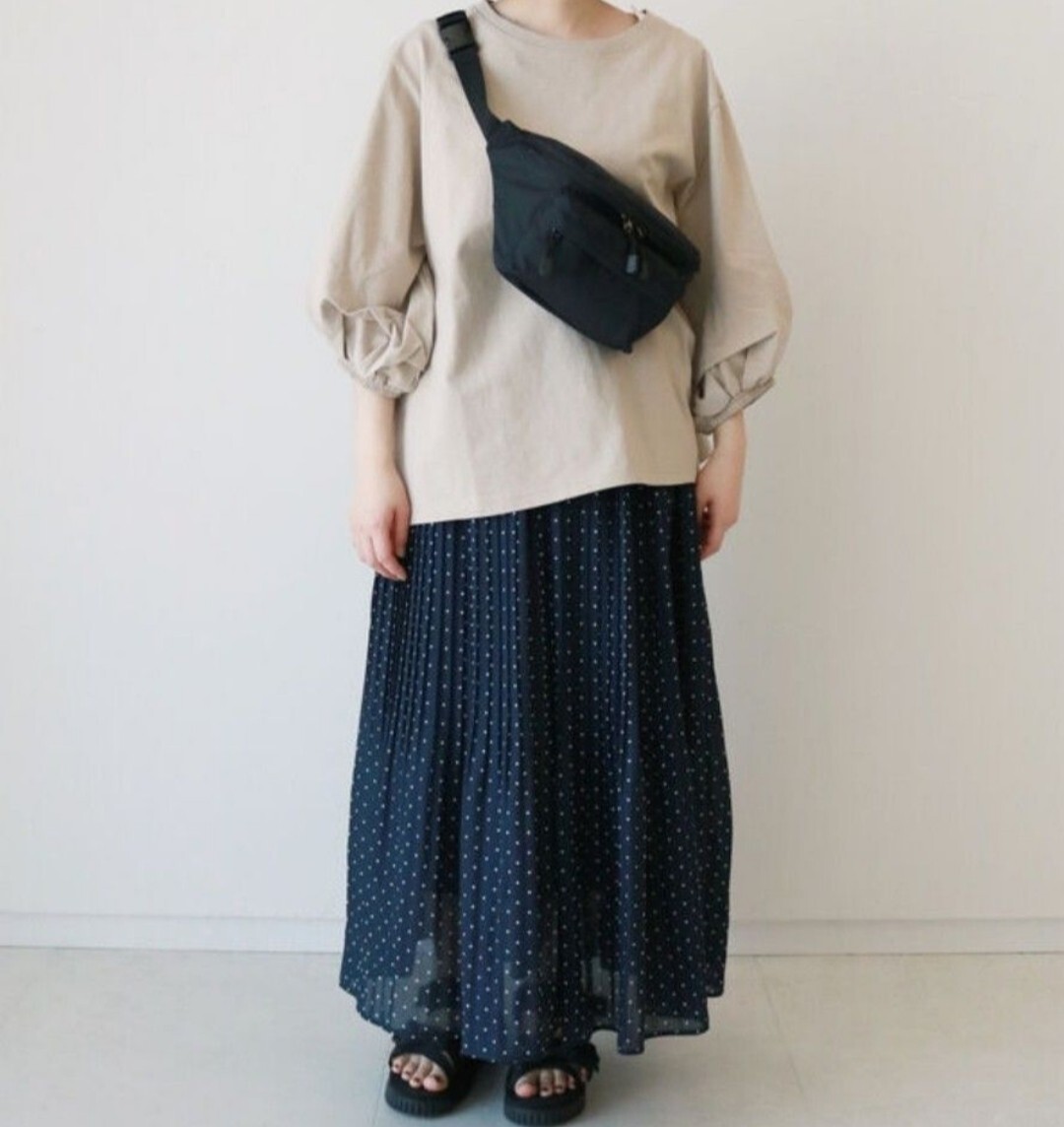 歩くたびに可憐なニュアンスを振りまく表情のあるプリーツもポイントに。ウエストはゴムギャザー仕様なので、フィット感高めながら穿き心地も快適です。