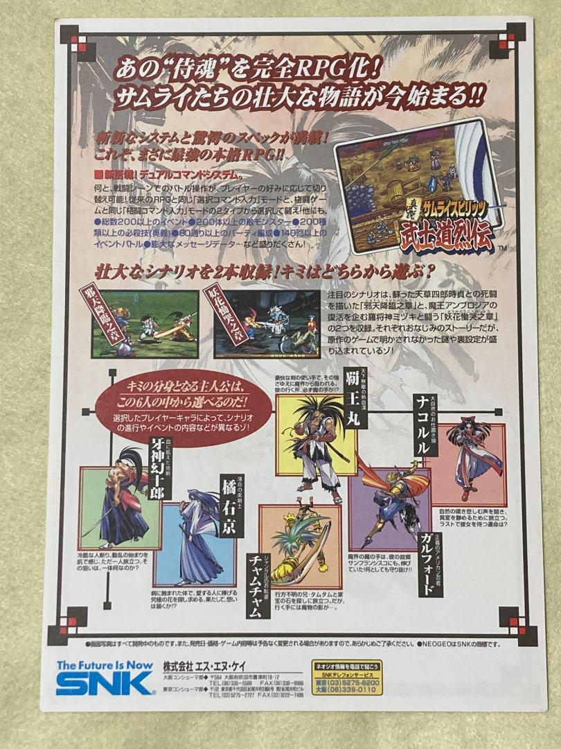 SNK NEO-GEO CD 真説 サムライスピリッツ 武士道列伝 ゲームチラシ ゲームのチラシの販売です。 ソフトなど 有りません。 状態 当時物としては 良い方だと思います。 数年から数十年経過している当時物の紙の中古品ですので、角痛みシワや凹み汚れ など多少有る物として お願いします。 細かい状態を気にする方、美品をお求めの方、神経質な方は、入札をご遠慮ください。 資料としてほしい方のみお願いします。 写真のチラシのみになります。 | |