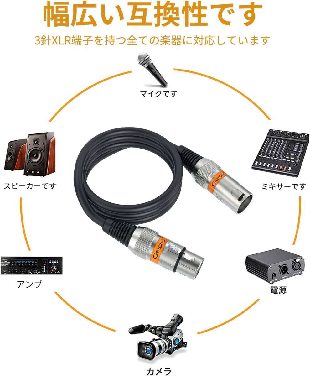 Getaria マイクケーブル XLR ケーブル キャノンケーブル オス-メス XLRバランス接続 マイク録音用 コンデンサマイク、AVアンプ、スピーカー等の録音デバイスに対応