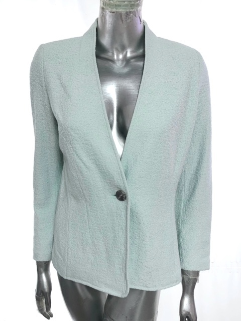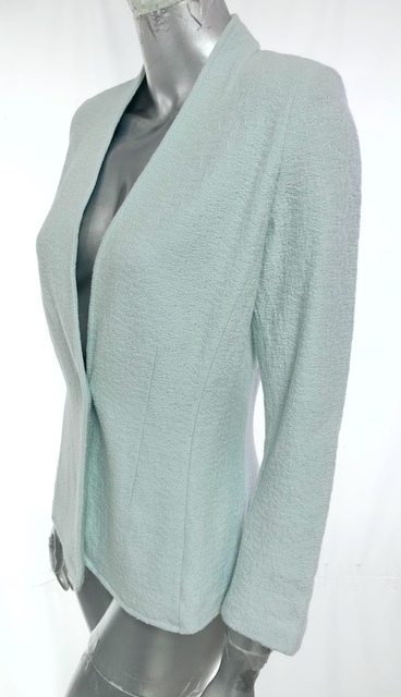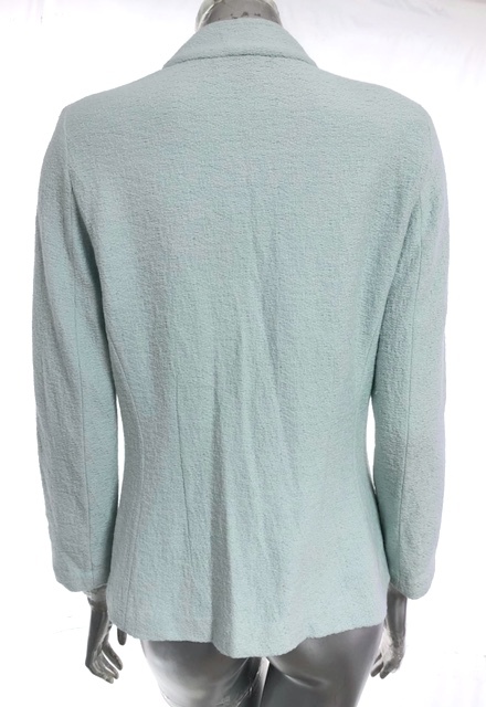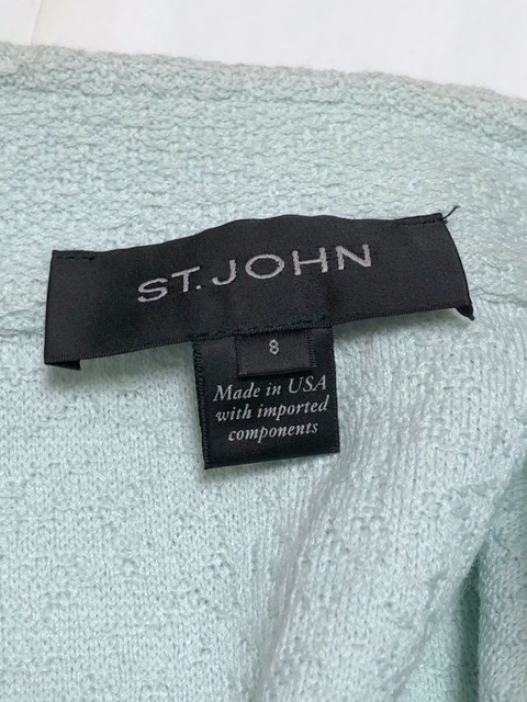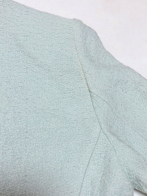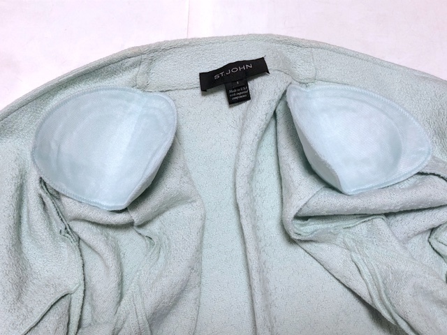 二点落札で送料無料!S6 セントジョン ニット ツイード テーラードジャケット 8 ノーカラー S〜M フォーマル 結婚式 ライトブルー 水色