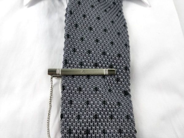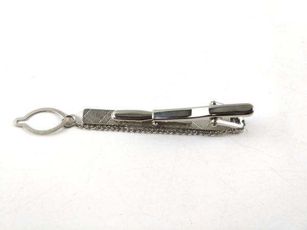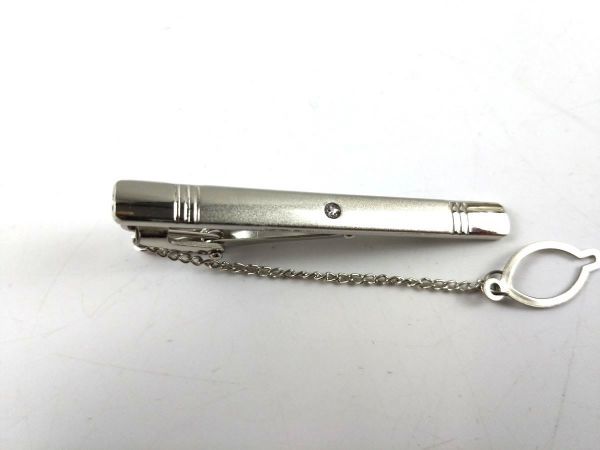 | ネクタイピン ボタンに止められるチェーン付きです。 普段使いや結婚式・パーティーにもオススメです。 カラー:写真の通り 素材:真鍮、ロジウムコーティング サイズ:約6cm X 1.8cm 自宅保管の未使用品です。 パッケージはありません。 |