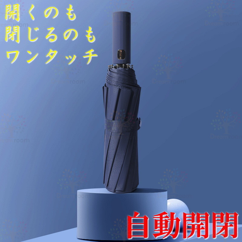話題の 自動開閉 ワンタッチ 折り畳み傘 大きめ 105cm12本骨 【F-266 ネイビー】 軽量 晴雨兼用 日傘 雨傘 梅雨 大きいサイズ