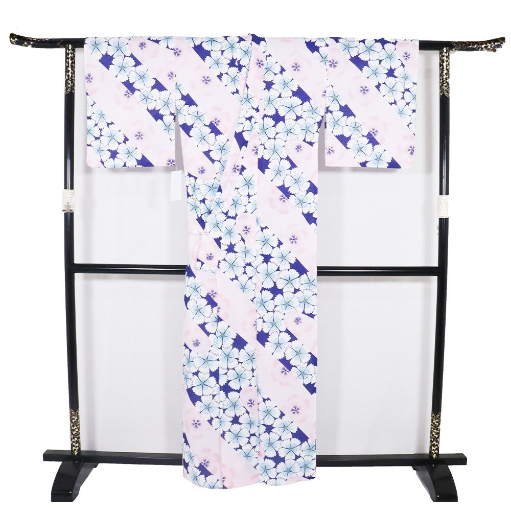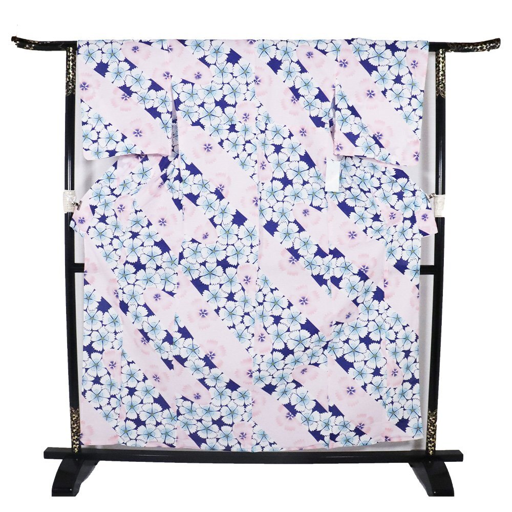 | 女性用 浴衣 レトロ調 ピンク・紺・斜め縞地 撫子 新品 フリーサイズ | |