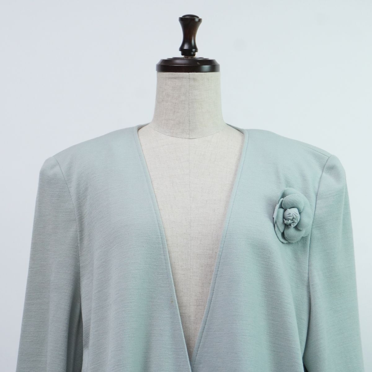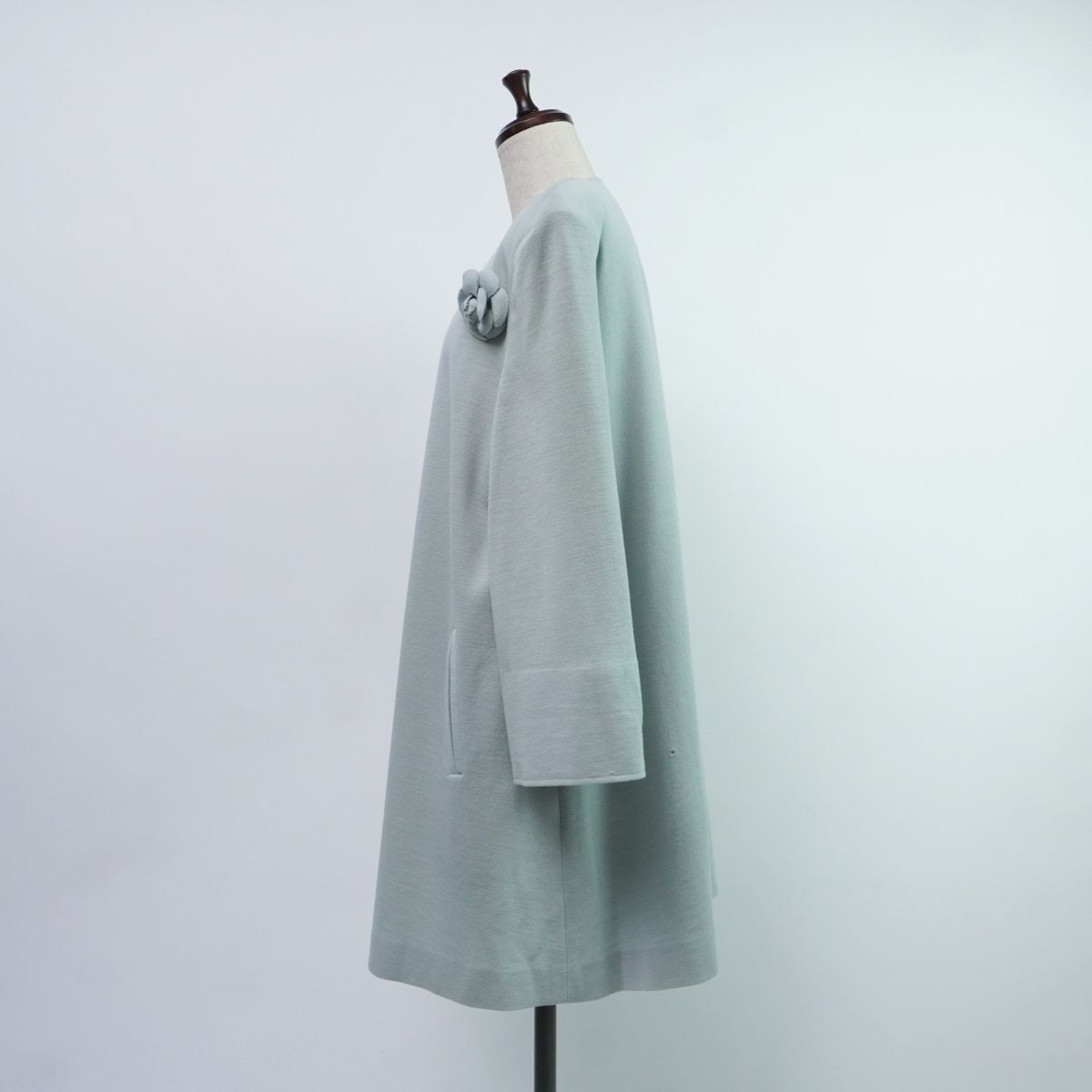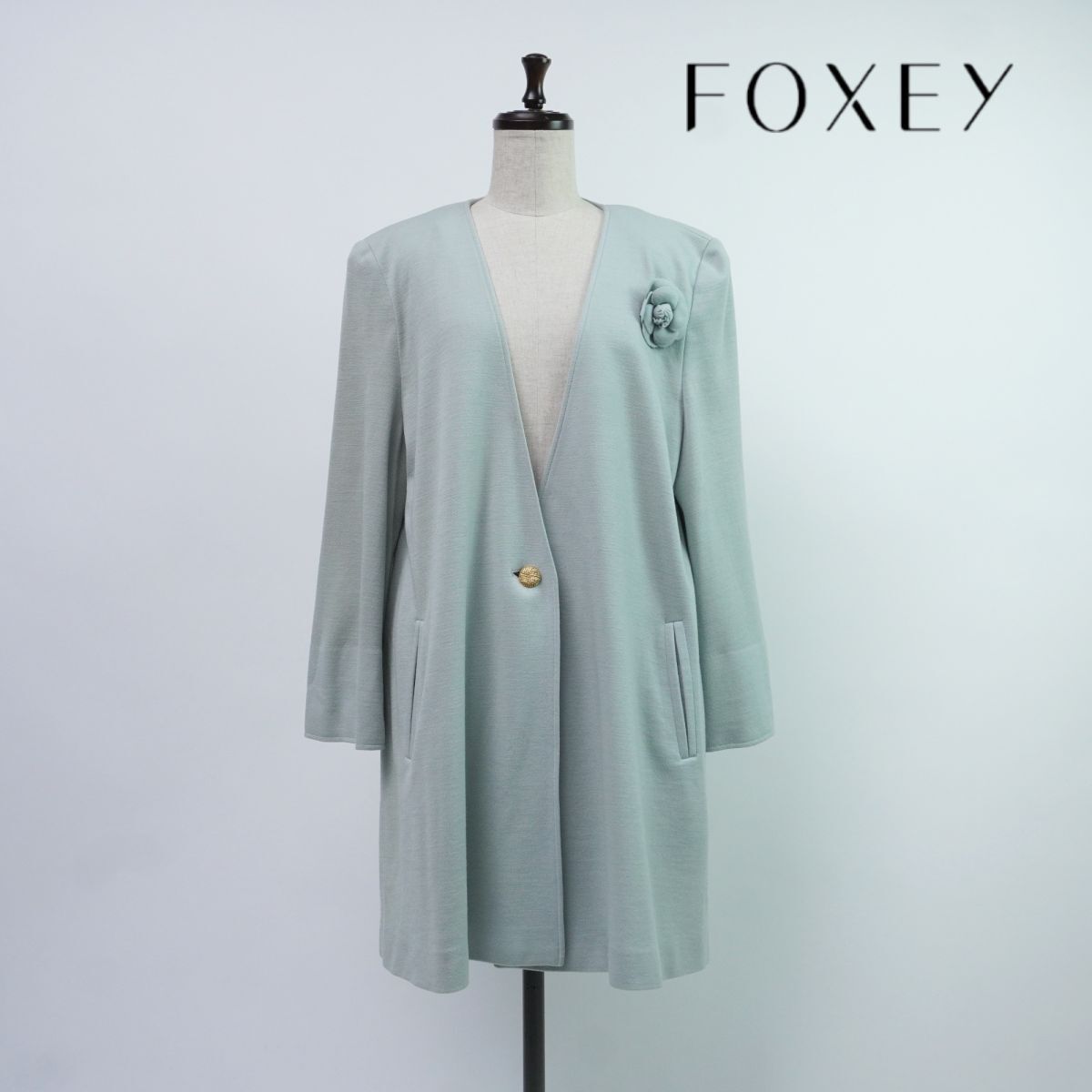FOXEY フォクシー ウール100% コサージュ付き ノーカラービッグシルエットロングジャケット レディース 緑 グリーン サイズF*OC1661