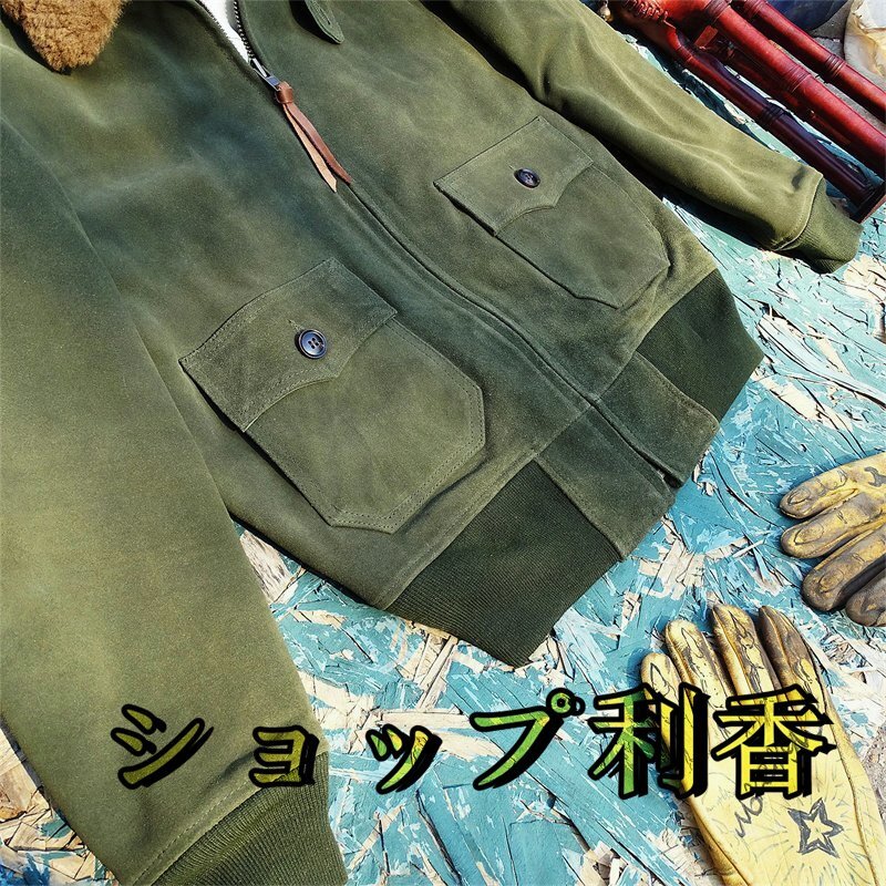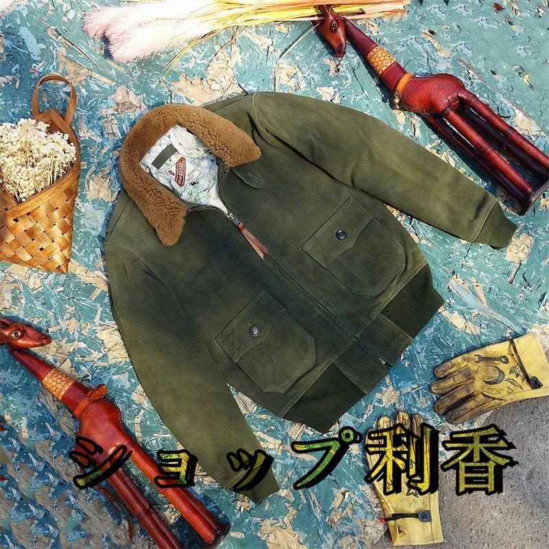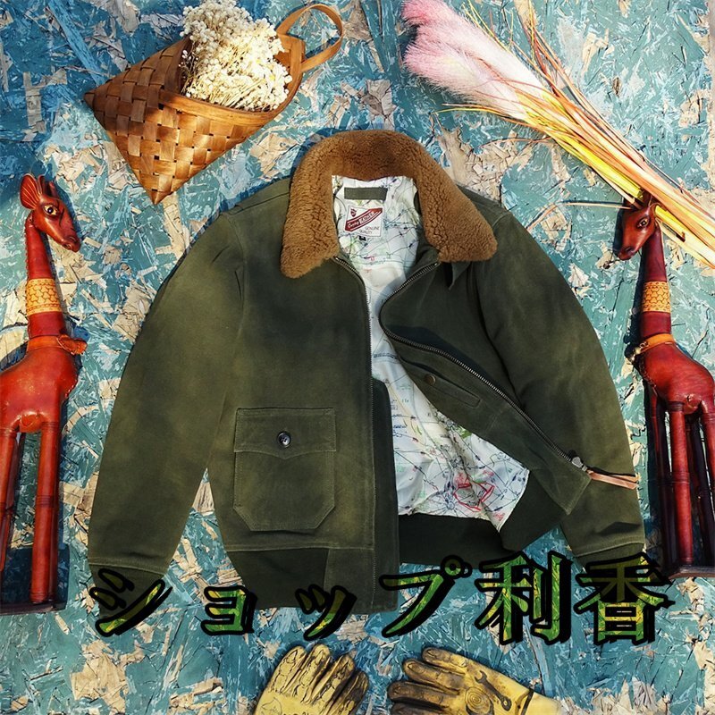 レザージャケット 上品 本革 牛革スエードジャケット ウール襟 ライダースジャケット  革ジャン