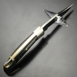 黒色のホーンハンドルとボルスターが本体の高級感を引き立てます。