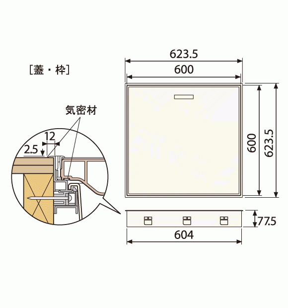 12/27~1/6迄冬期休暇です。休み明けより随時発送いたします。※色とサイズをお間違えにならぬようご注意ください※【600×600mm/ライトグレー】・カラー:ライトグレー(LG)・タイプ:フローリング合わせタイプ※板厚12mm専用です。・材質:【蓋】縁材:PP 底蓋ABS 【枠】PP・床開口寸法:606×606mm・フローリング切断寸法:577.5×577.5mm・正価:26,000円■セット明細・点検口(蓋部材・枠) 600×600タイプ×1台・スライドコア×12コ・キャップ×12コ※専用床下収納庫も販売しています。■送料について ・送料無料 ・沖縄は別途送料がかかります。離島には発送ができません。ご了承ください。 ・2個以上ご注文の場合重ねて1個口にて発送いたします。■返品、交換について・商品の欠陥や不良など当社原因による場合には、返品・交換を受け付けさせていただきます。・商品到着後、5日間以内にお電話ください。 なお、お客様都合による返品・交換はいかなる場合でも受け付けておりませんので、ご了承ください。