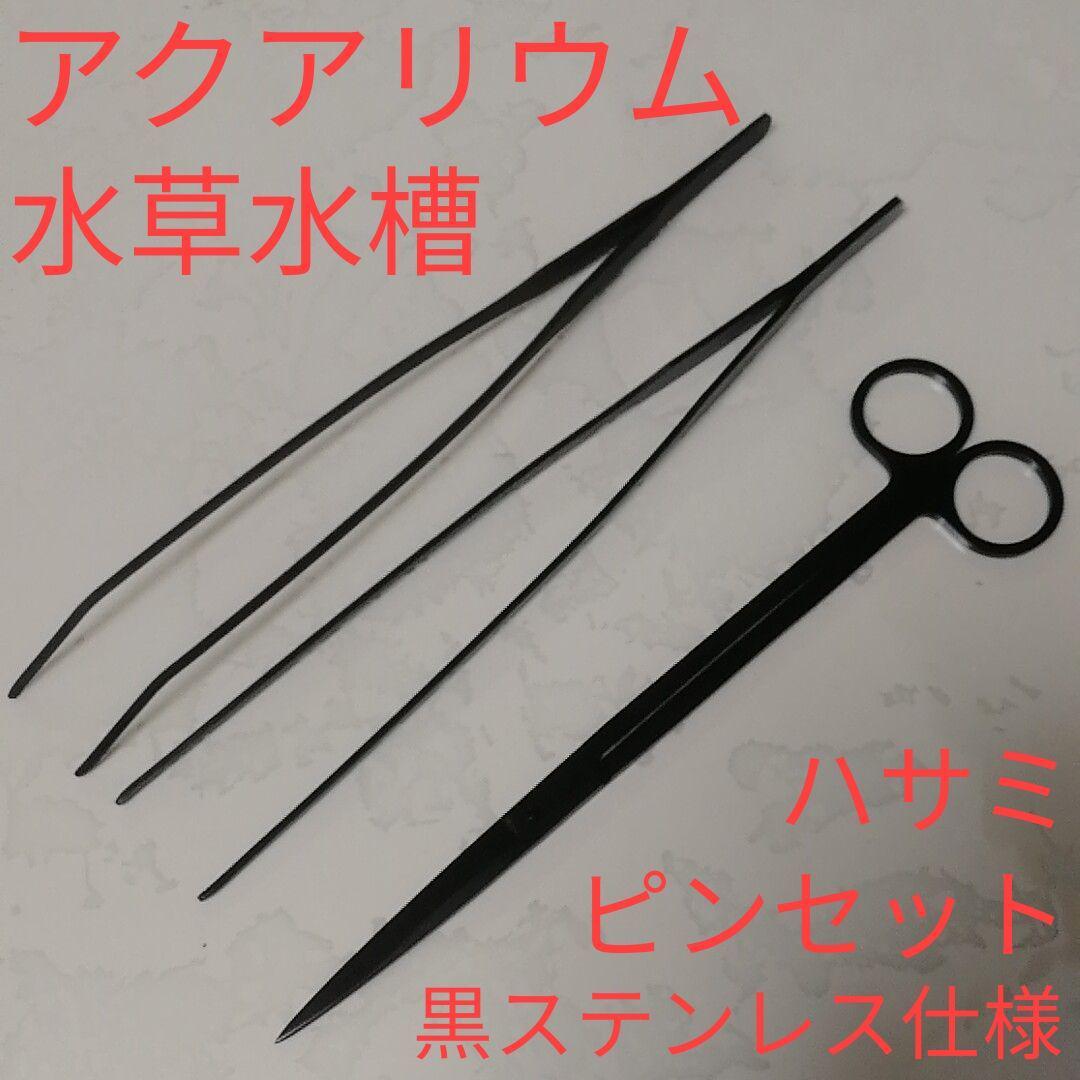 水草トリミングハサミ&ピンセット3点/黒ステンレス/ロング/水槽 ブラック/アクアリウム/水草水槽