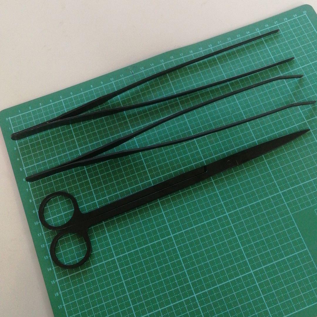 水草水槽トリミング用、お手入れピンセット ハサミ 3点セットです。