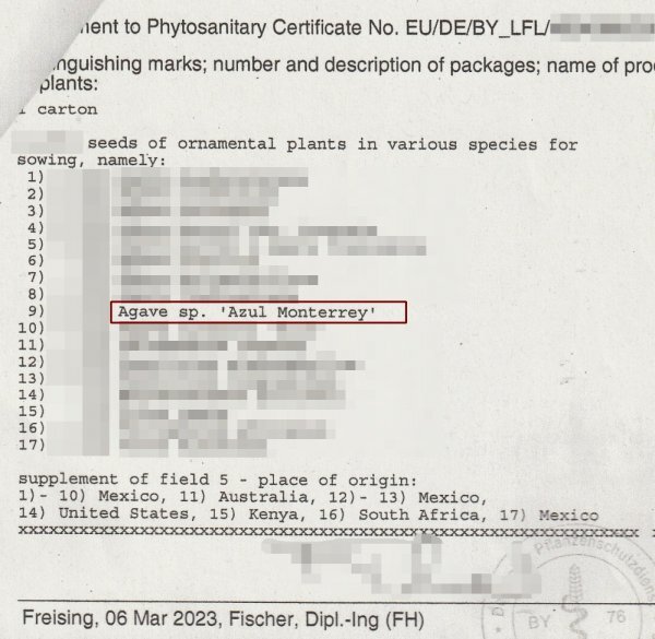 アガベ sp. アズール モントレー / Agave sp. 'Azul Monterrey' の種子20粒+αです。