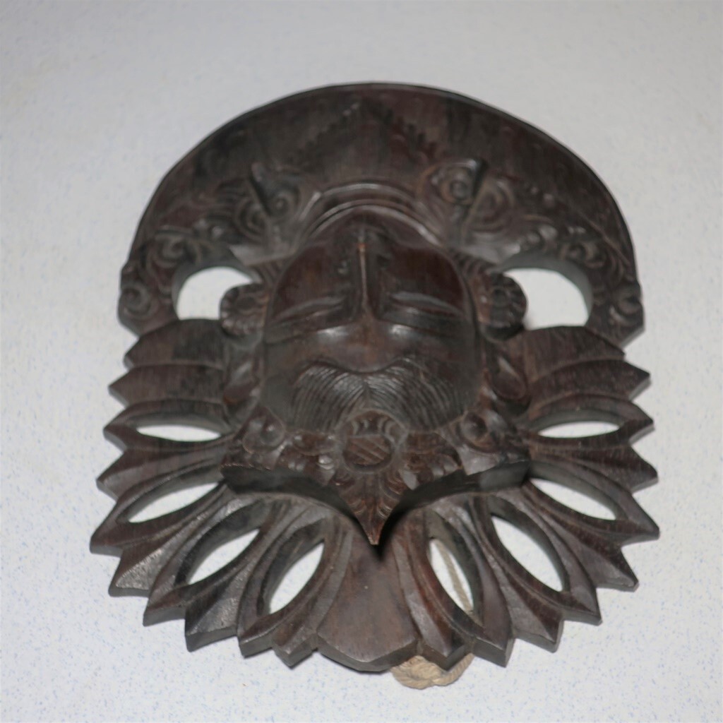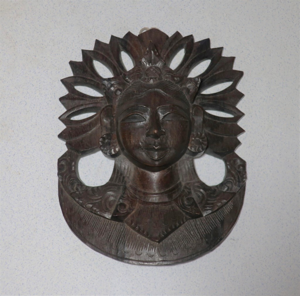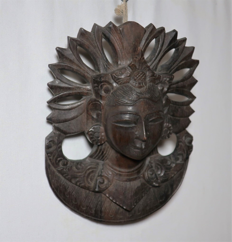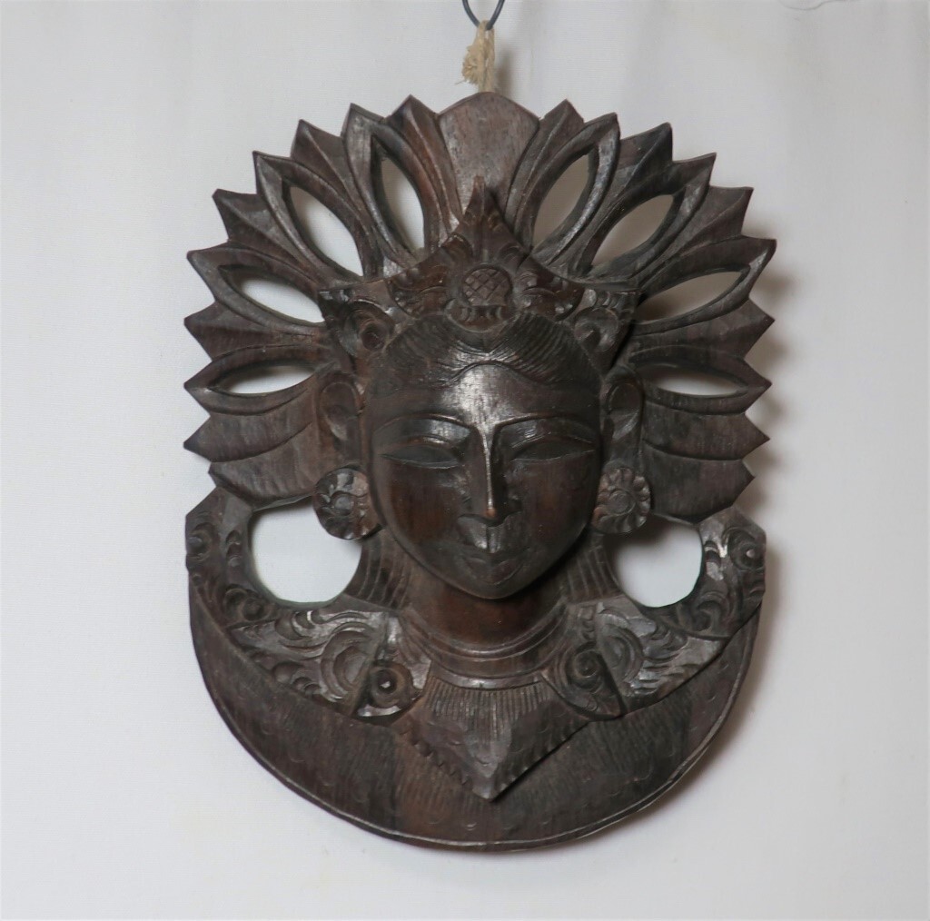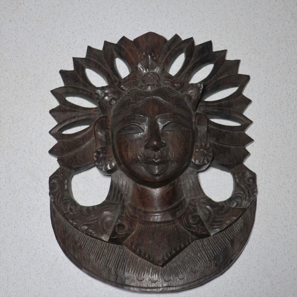 長期保管のお品ですので、 色合いに若干色褪せがあると思います。 お土産の民芸品と思われますが、入手経緯不明です。 東南アジアのインドネシアやバリ民芸などにありそうな造形ですね。 木の材質はそこそこ硬いもののようです。 小傷など見られます。 ◎ 全体をエタノールと刷毛で掃除しました。 サイズ : 縦 約14.5cm 横 約11.5cm 厚み 約4.5cm | |