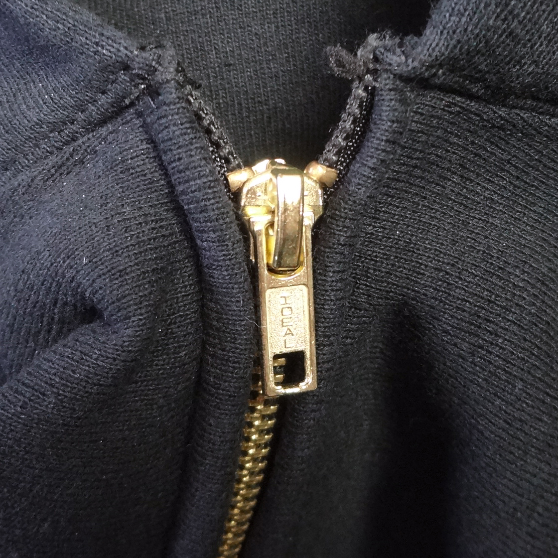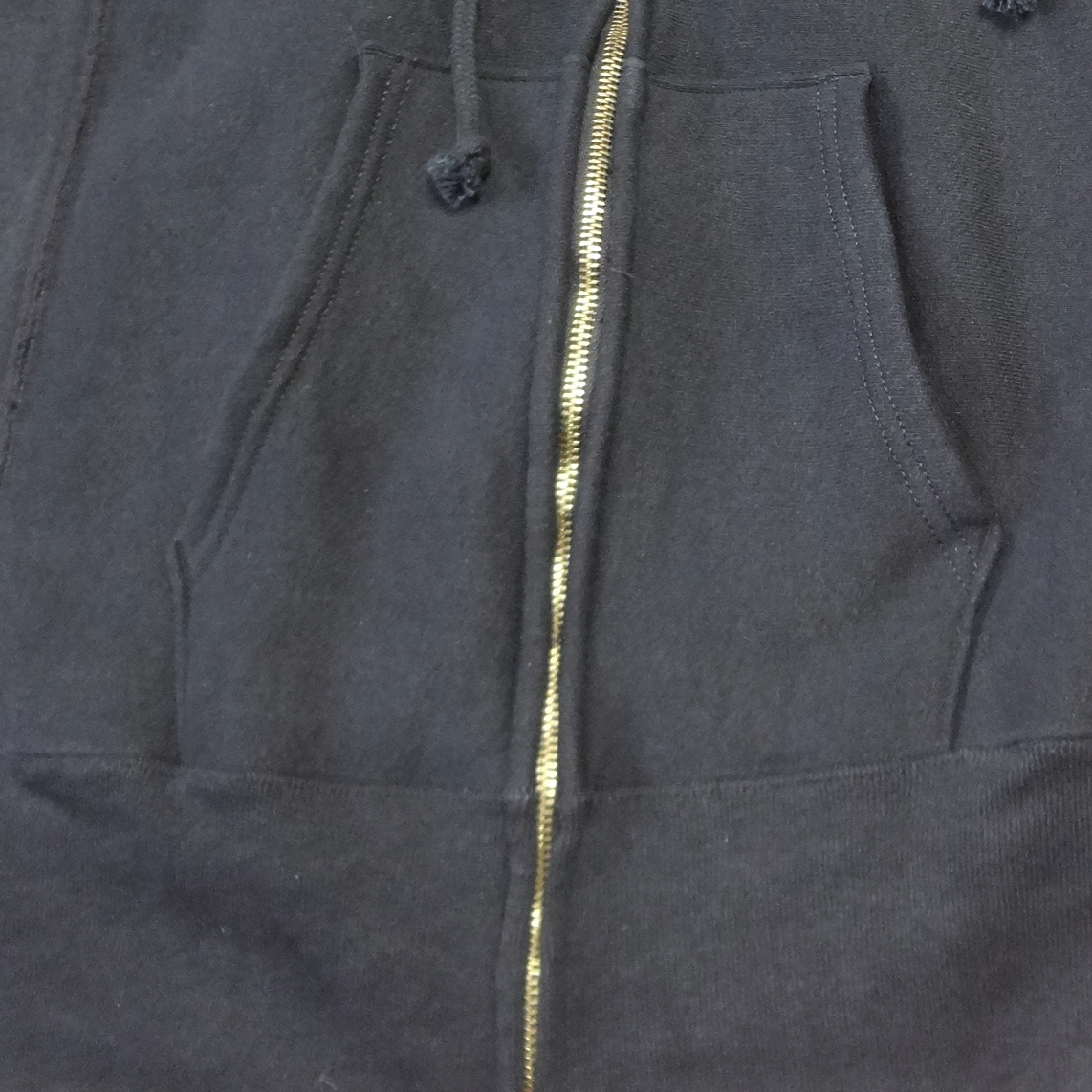 チャンピオンのリバースウィーブ(赤タグ)ジップスウェットパーカー、実店舗の店頭展示品を1度クリーニングしただけの未使用品、MADE IN USAアメリカ製、リバースウィーブREVERSE WEAVE、C5-U102090/ブラック、素材は裏起毛:12,5オンスUSコットン90%/ポリエステル10%、リブ部分:綿100%、製造は米国製