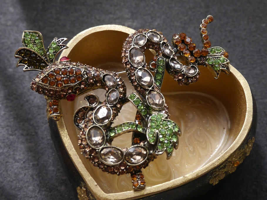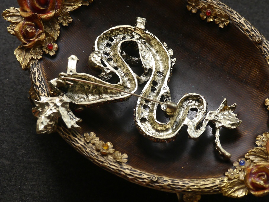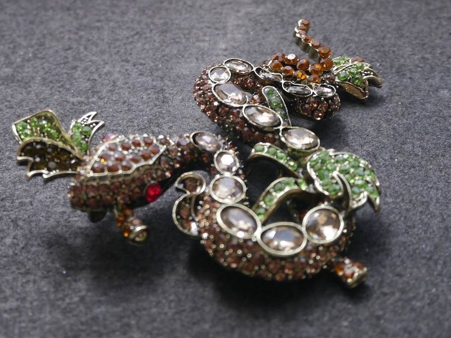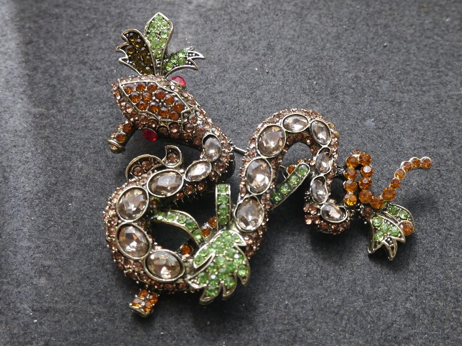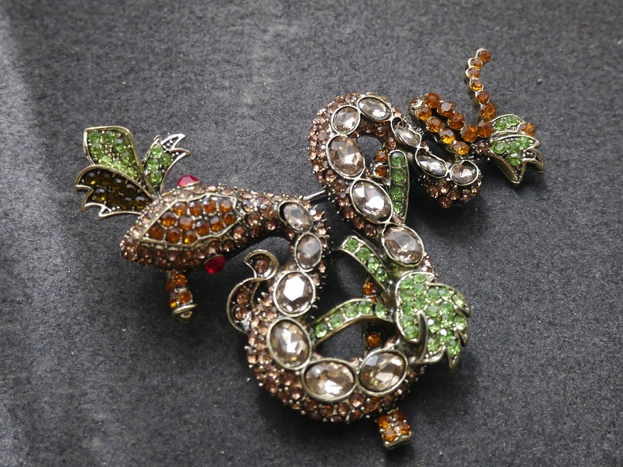 新品アンティーク調きらきらストーン蛇ヘビさんブローチ クラシック ヴィンテージ ヴィクトリアン かなり大きめ