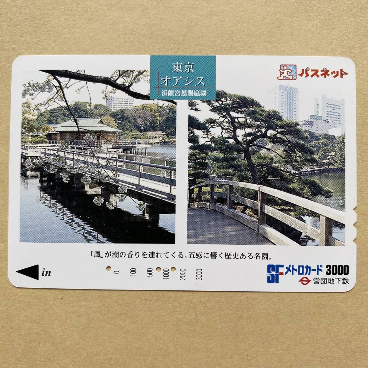 【使用済】 パスネット 営団地下鉄 東京メトロ 東京オアシス 浜離宮恩賜庭園 「風」が潮の香りを連れてくる。五感に響く歴史ある名園。