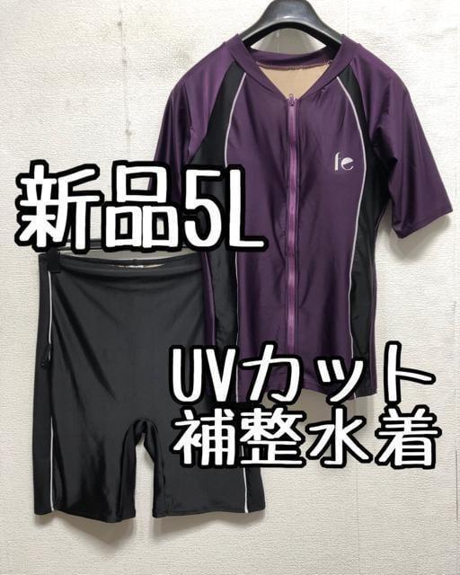 新品☆5L♪パープル系♪セパレート補整水着♪半袖♪前開き☆a104