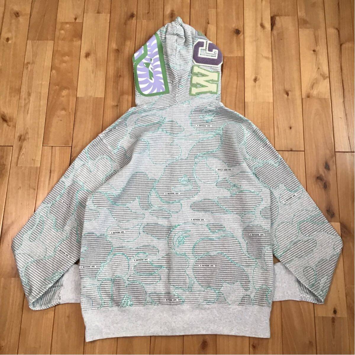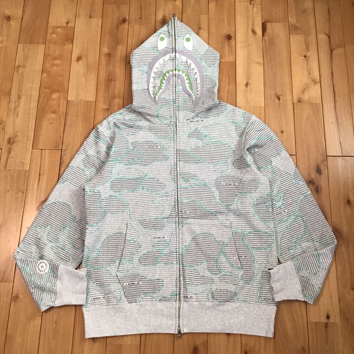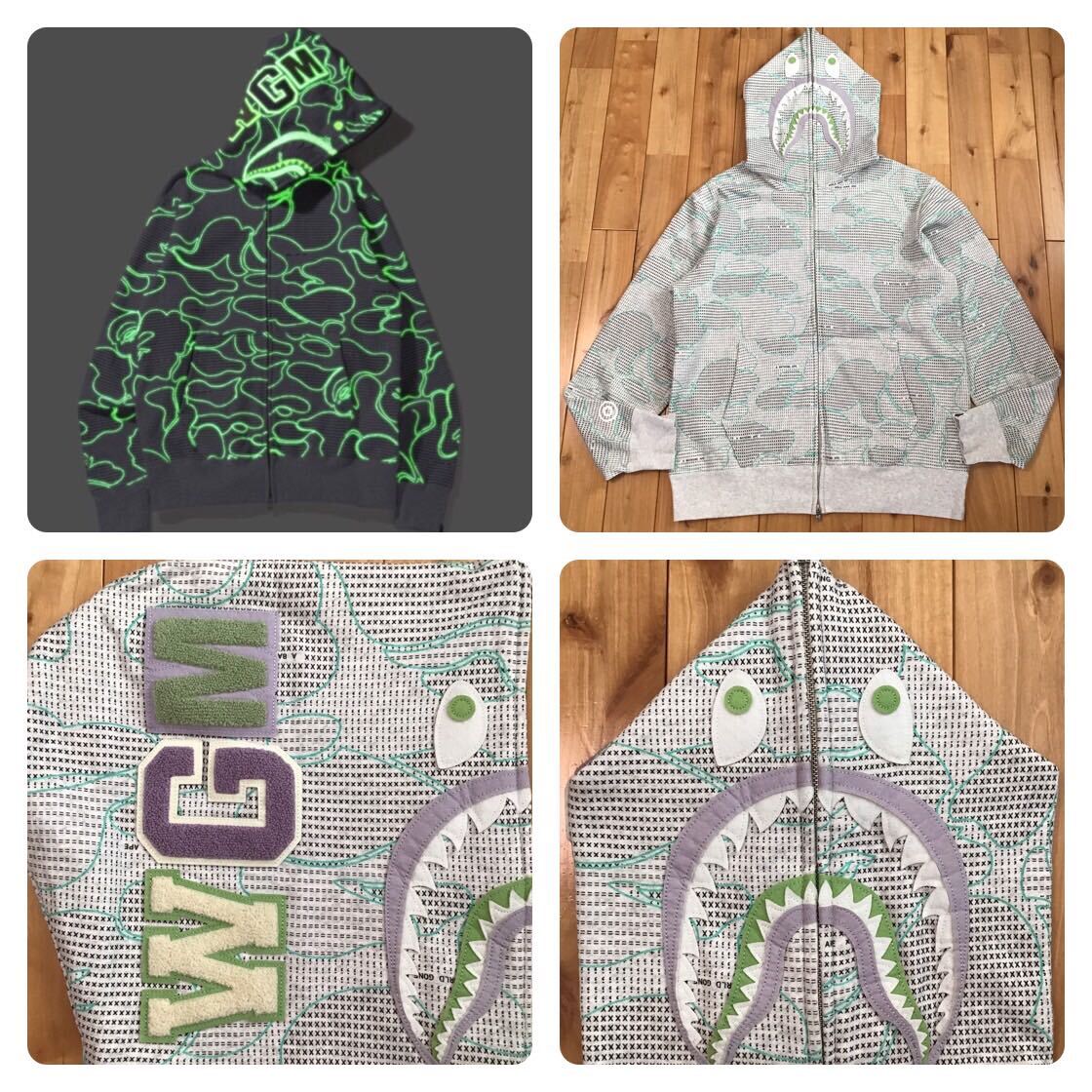 a bathing ape ★蓄光★ TEXT CODE CAMO シャークパーカー グレー XLサイズ です★