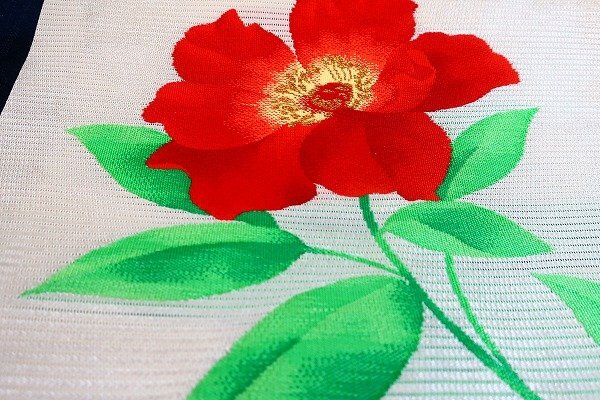 【送料無料】美品 名古屋帯 夏帯 絽 クリームホワイト 花 長さ3m57㎝ お洒落 正絹 仕立て上がり m-6021 |