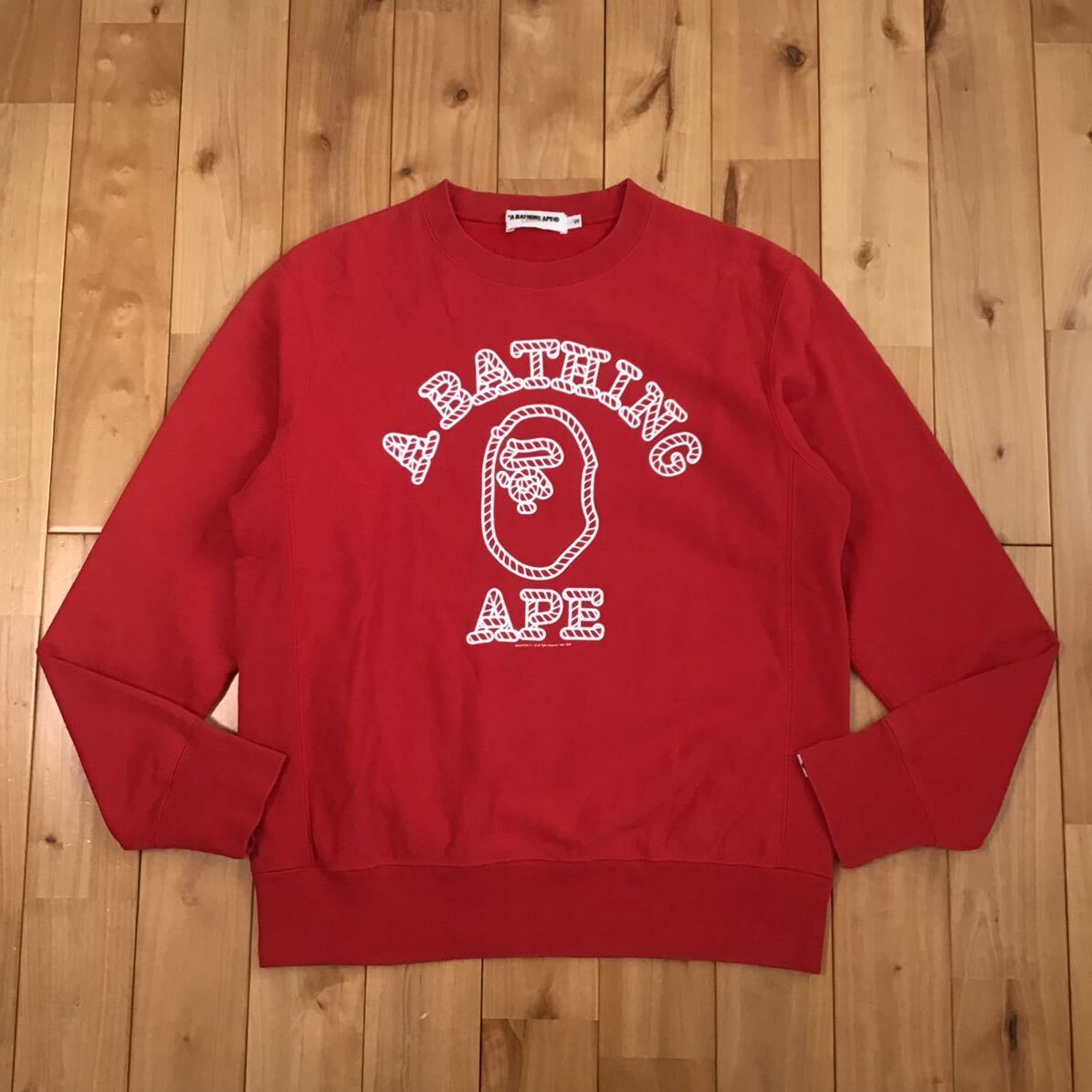 a bathing ape カレッジロゴ 長袖スウェット レッド Sサイズ です★