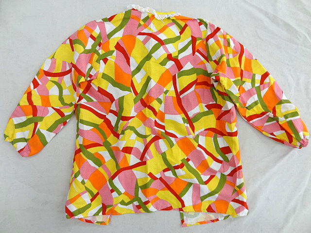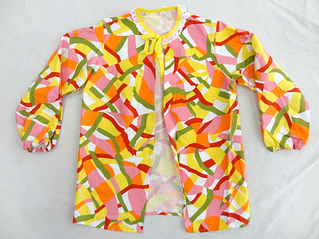 ビンテージ 60S 70S デッドストック レディース ビーチ ガウン 羽織 ジャケット 幾何学 ジオメトリック パターン 総柄 マルチ カラー 希少