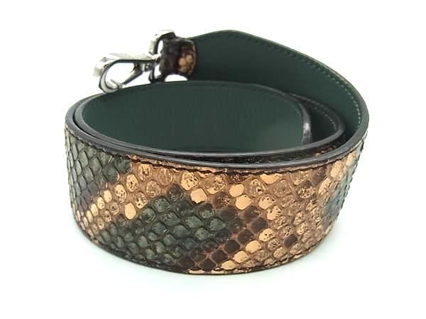 ■極上■本物■美品■ FENDI フェンディ ストラップユー パイソン バッグ用 ショルダーストラップ 肩掛け ベージュ系×グリーン系 FA4062