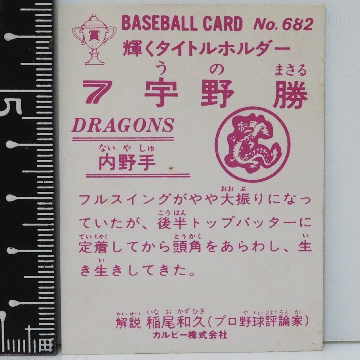 83年 カルビー プロ野球カード No.682【輝くタイトルホルダー 8月MVP 宇野 勝 中日ドラゴンズ】昭和58年 1983年 当時物 Calbee おまけ 食玩