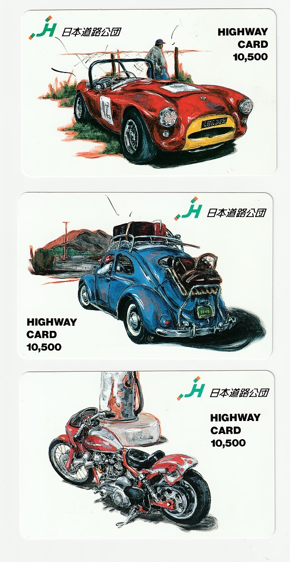 ■ハイウェイカード■ ■HIGHWAY CARD■ ■日本道路公団■ ■クラシックカー■ ■バイク■ ■イラスト■ ■3枚セット■ ■使用済■ |