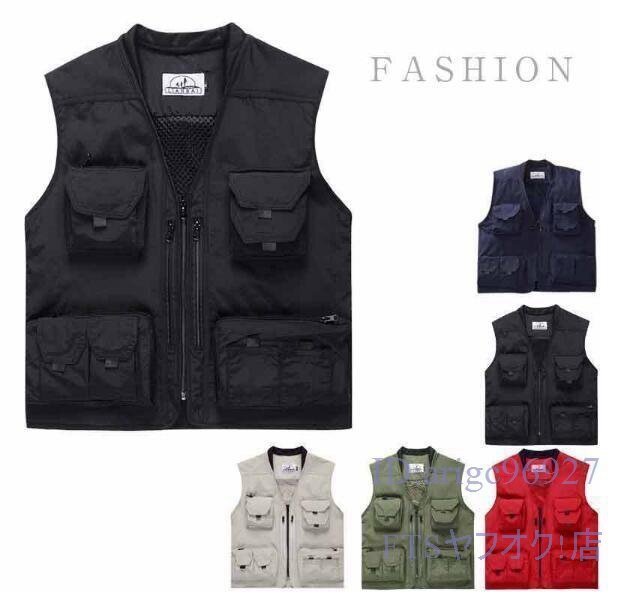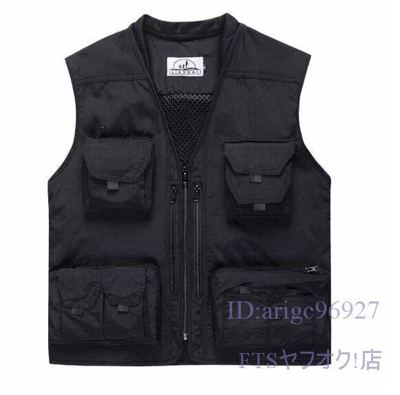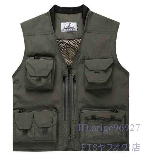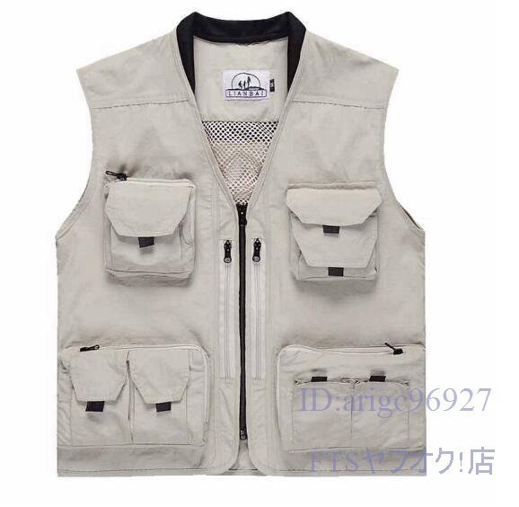 S860☆新品メンズベストカメラマンベストフィッシングベストアウトドアメッシュ多機能お釣り登山服撮影用ベージュM/L/XL/2XL/3XL
