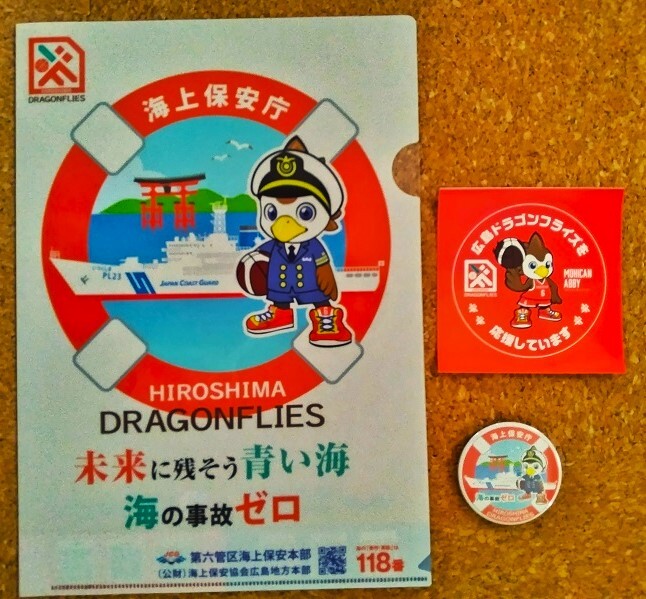 広島ドラゴンフライズ 新品 3点セット 缶バッチ ステッカー クリアファイル 海上保安庁 Bリーグ 非売品 バスケットボール