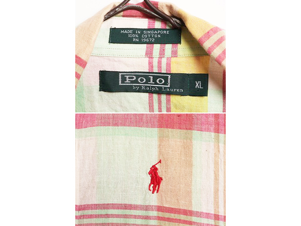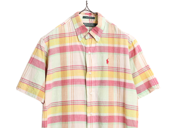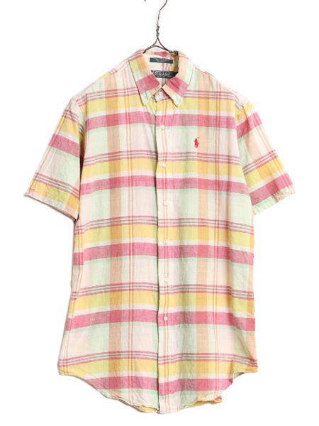 商品名 | 90s ポロ ラルフローレン チェック 半袖 ボタンダウン シャツ キッズ XL メンズ M 程/ 90年代 オールド 半袖シャツ コットン ワンポイント |